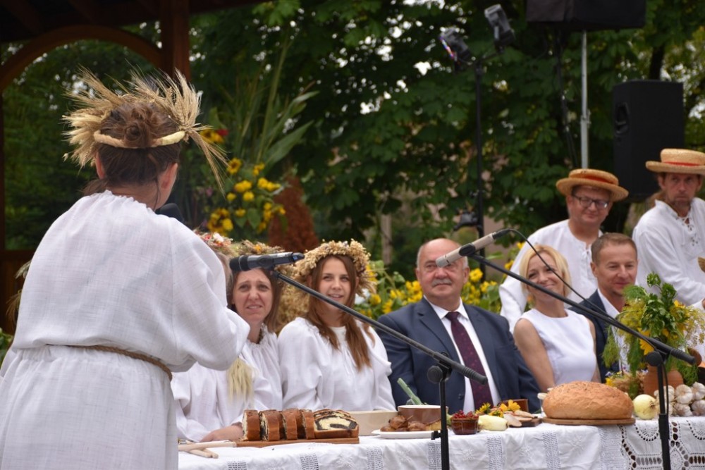 Po wystÄ™pie gÅ‚os zabrali chÄ™tni Szanowni goÅ›cie, po czym wedÅ‚ug dożynkowego zwyczaju symbolicznie podzielono chleb miÄ™dzy uczestników wydarzenia.