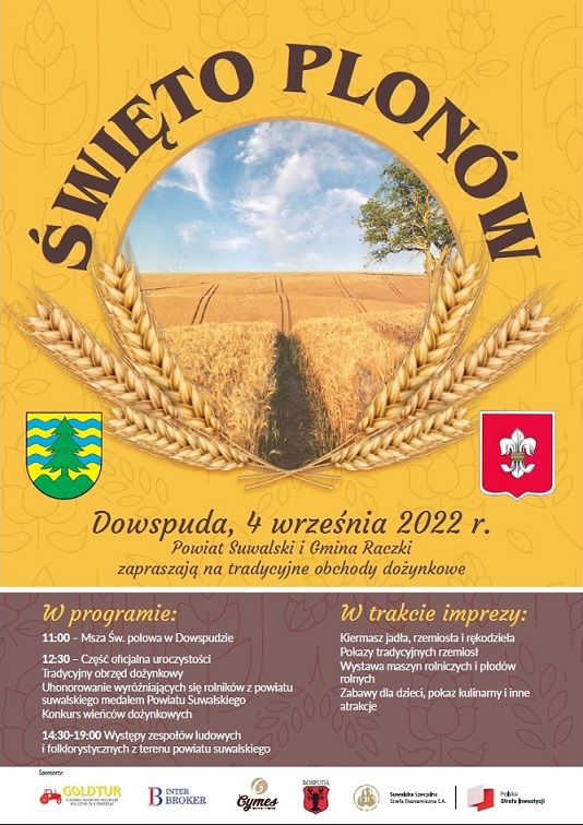 Powiat Suwalski i Gmina Raczki zapraszają do wzięcia udziału w tradycyjnych obchodach dożynkowych „Święto Plonów 2022”.