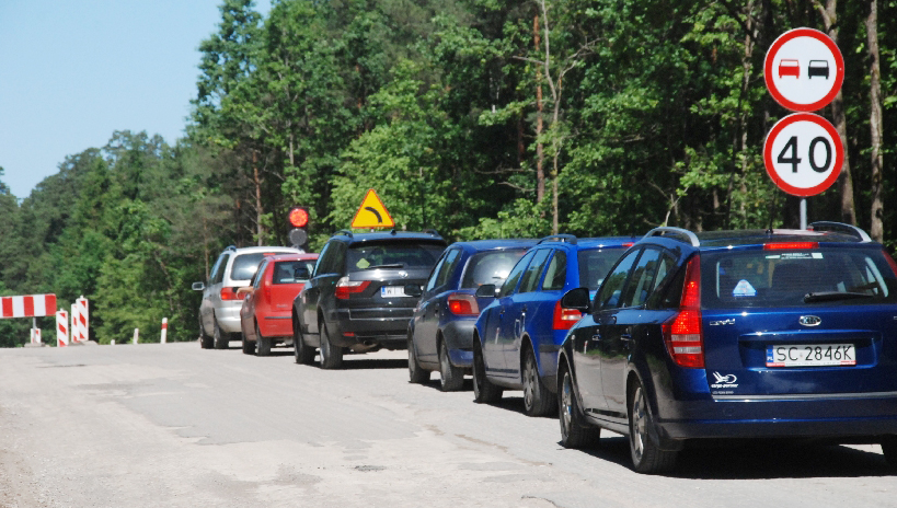 Na kilku odcinkach trasy, od Suwałk do skrzyżowania z drogami do Leszczewa i Leszczewka, drogowcy zerwali starą nawierzchnię, ograniczając ruch do wahadłowego jednym pasem. W czterech miejscach ustawili sygnalizację świetlną. Zwłaszcza w godzinach porannego i popołudniowego szczytu powstają tu kilometrowe korki. Nie wszyscy kierowcy wytrzymują nerwowo. Niektórym brakuje wyobraźni i nie bacząc na czerwone światło jadą, powodując zagrożenie nie tylko dla siebie, ale też dla innych użytkowników drogi. O takich kierowcach w czasie debaty z udziałem m.in. policji, mówili w piątek mieszkańcy Starego Folwarku. Takiego, w czerwonym aucie z warszawską rejestracją, widzieliśmy stojąc w korku w Krzywem.