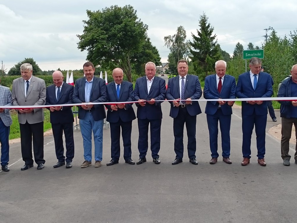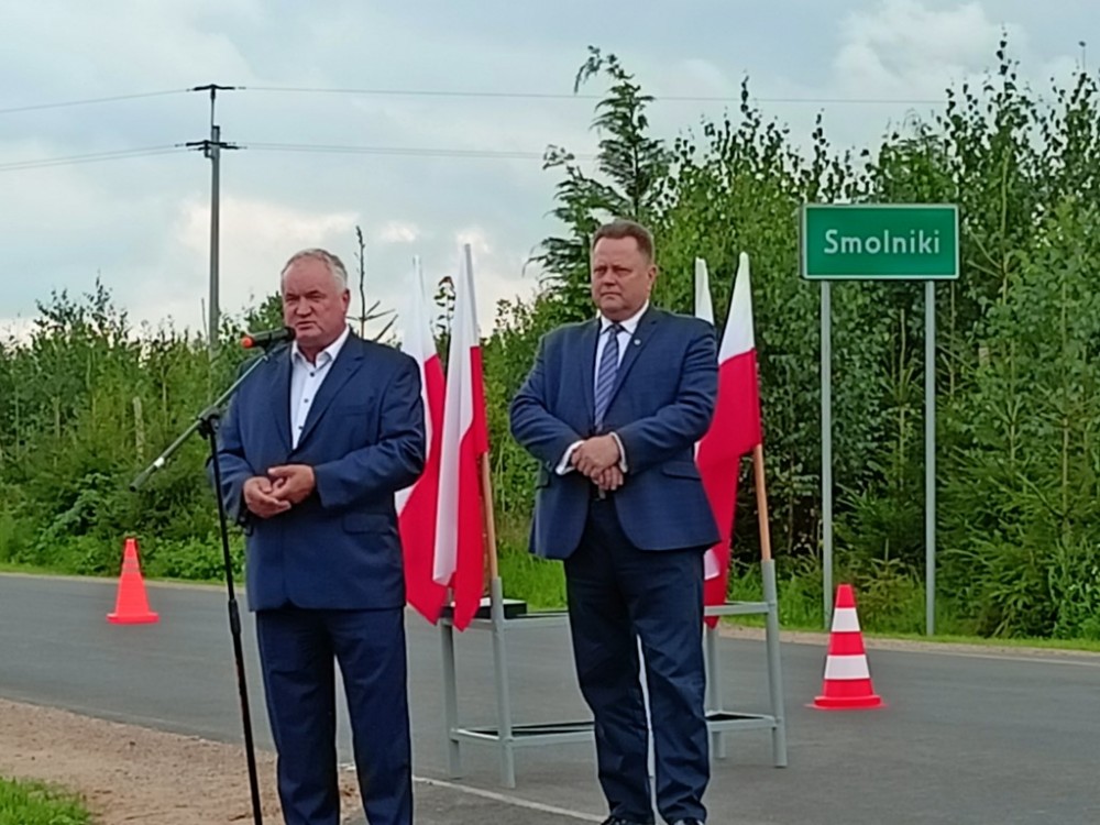 We wsi Ługiele samorządowcy z powiatu suwalskiego uroczyście otworzyli ostatni odcinek 14-kilometrowej drogi powiatowej nr 1127B Wiżajny – Smolniki – Sidory, wiodącej przez urokliwe tereny północnej Suwalszczyzny.