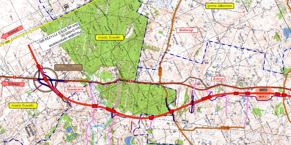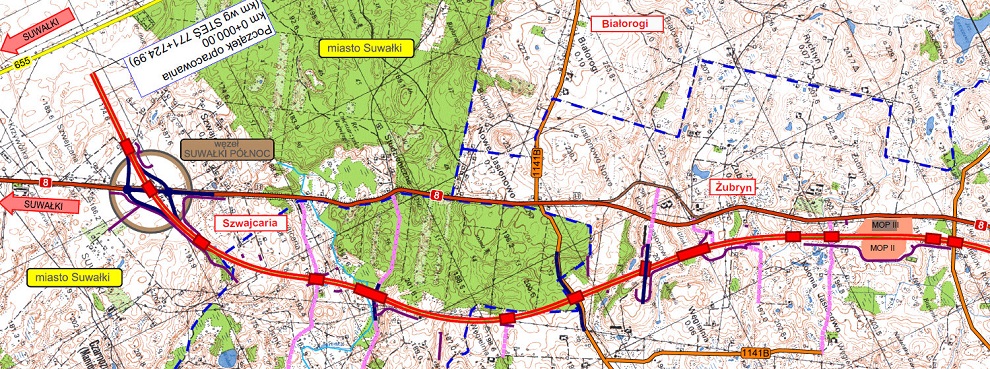 Najbardziej wysuniÄ™ty na póÅ‚noc odcinek póÅ‚nocnej Via Baltiki zaczynać siÄ™ bÄ™dzie wÄ™zÅ‚em rozjazdowym miÄ™dzy SuwaÅ‚kami, a SzwajcariÄ…. KrajowÄ… ósemkÄ™ omijaÅ‚ bÄ™dzie od wschodu, a w wielu miejscach obie trasy dzielić bÄ™dzie kilkaset metrów odlegÅ‚oÅ›ci. Na odcinku do Budziska zaplanowano cztery miejsca obsÅ‚ugi pasażerów i obwodnicÄ™ Szypliszk.