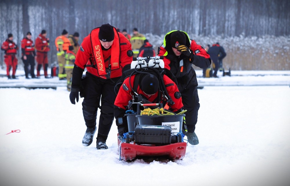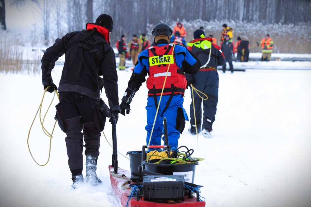 Strażacy doskonalili się m.in. w ratowaniu osób znajdujących się na powierzchni lodu lub granicy lodu i wody, jak też osób, które znajdują się pod lodem, ćwiczyli umiejętności posługiwania się sonarami i pojazdem ROV oraz techniki posługiwania się bezzałogowym statkiem powietrznym.