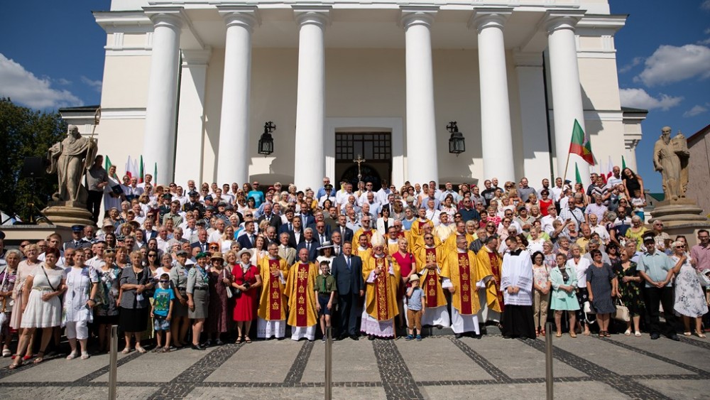 Po uroczystej Mszy św. w intencji suwalczan pod przewodnictwem ks. biskupa Jerzego Mazura, wszyscy chętni ustawili się na schodach konkatedry św. Aleksandra do wspólnego zdjęcia.