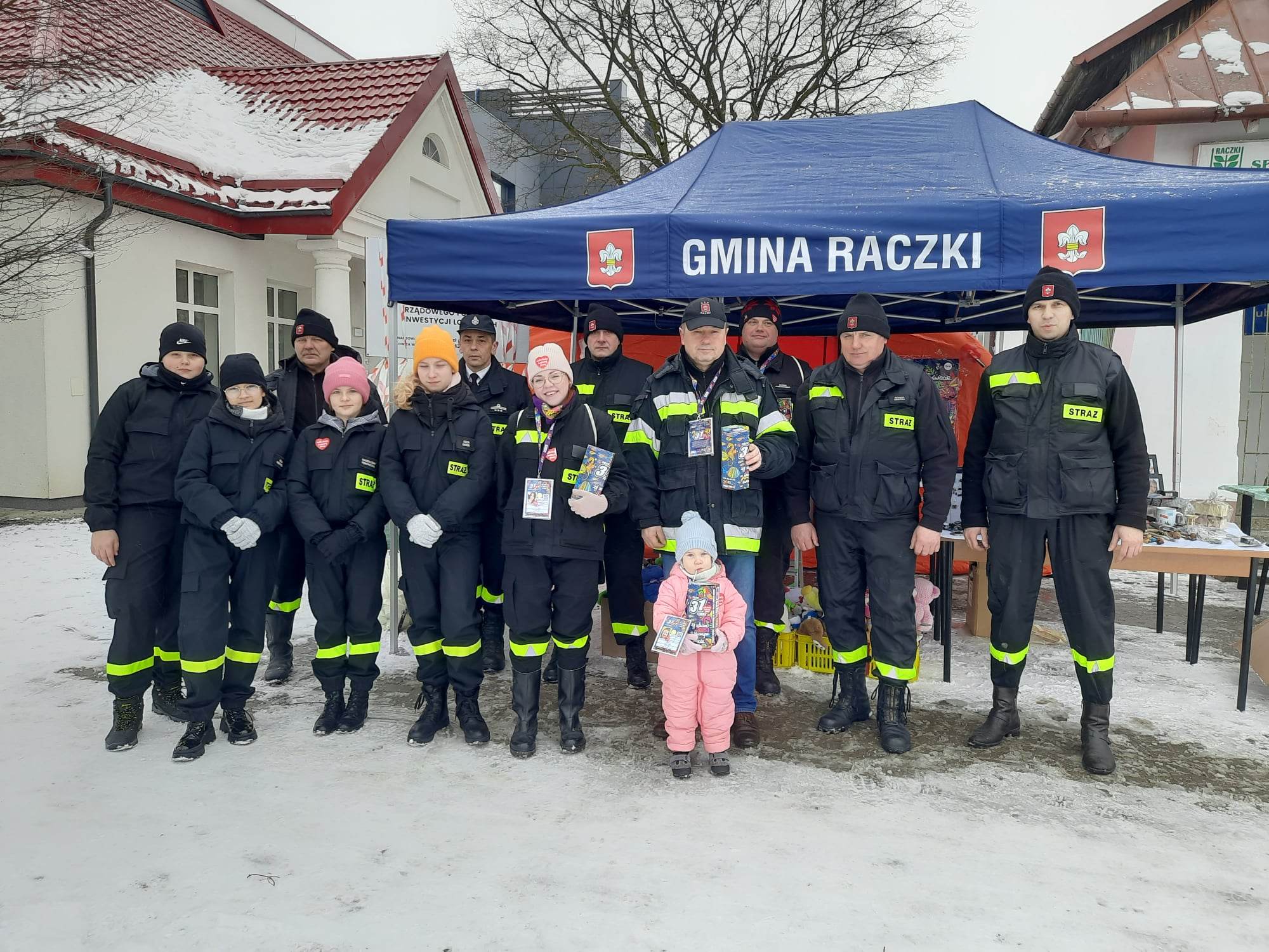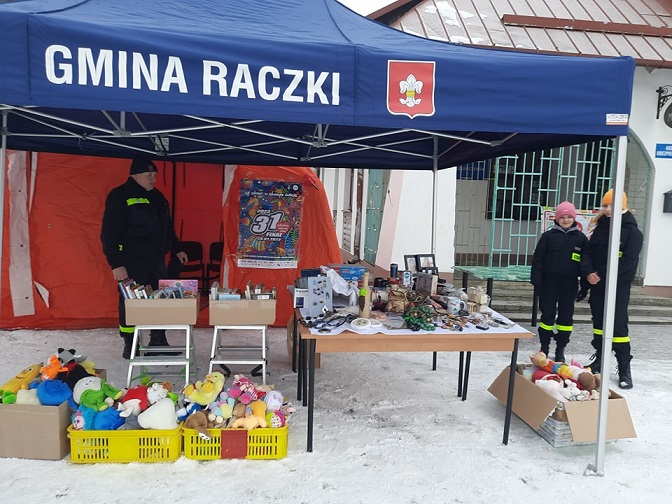 W zbiórkę na rzecz Orkiestry w Raczkach jak zwykle zaangażowali się druhowie Ochotniczej Straży Pożarnej, w tym roku przy wsparciu Gminnej Biblioteki Publicznej, Stowarzyszenia Małoraczkowiacy znad Rospudy, firmy kateringowej „Nika” oraz Gminnej Spółdzielni Samopomoc Chłopska.