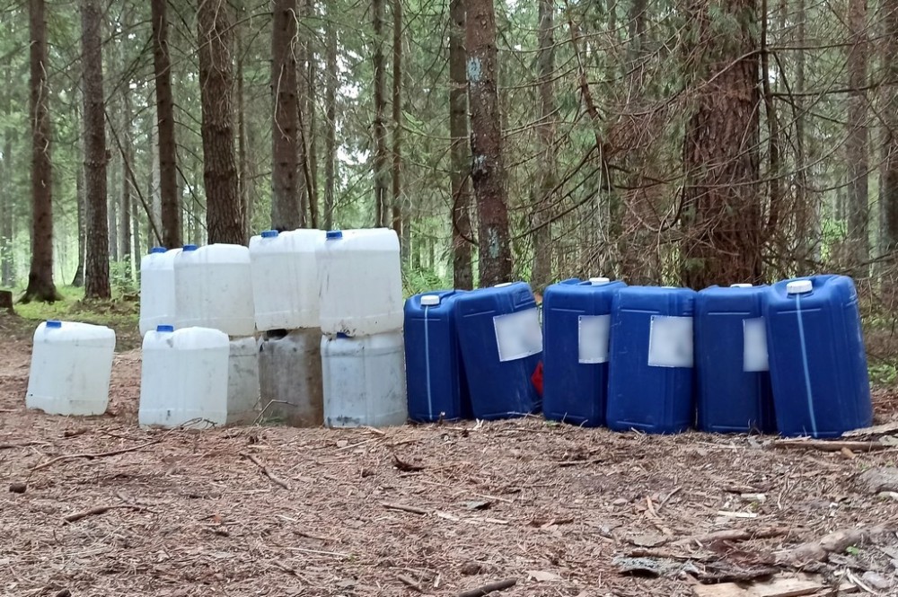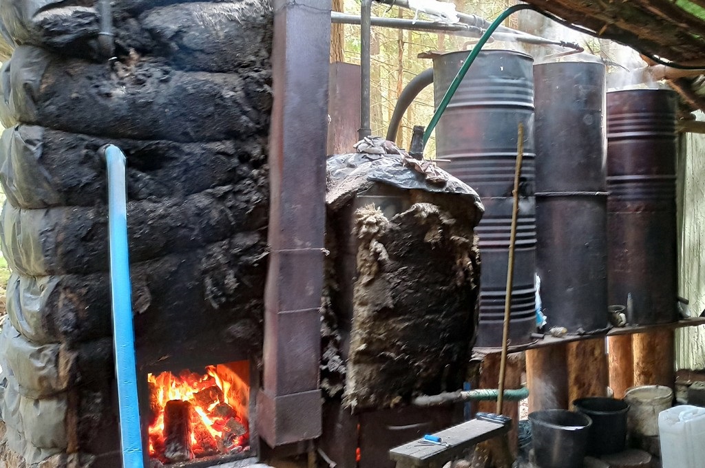 Funkcjonariusze KAS z Białegostoku ustalili, że w lesie w okolicach Gródka funkcjonuje bimbrownia, w której produkowany jest nielegalny alkohol na dużą skalę.