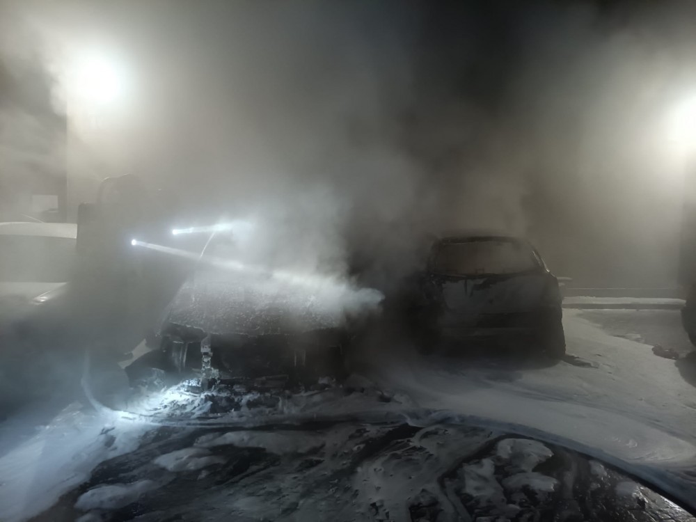 Trzy samochody doszczętnie spłonęły, a kolejne trzy zostały uszkodzone w nocnym pożarze, do którego doszło na parkingu przy ulicy 1 Maja w Suwałkach.