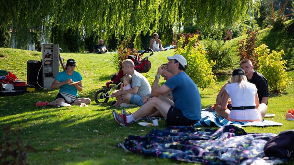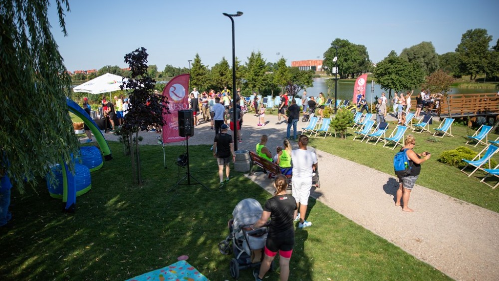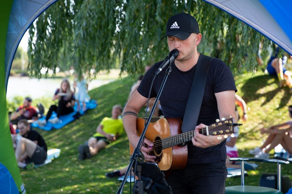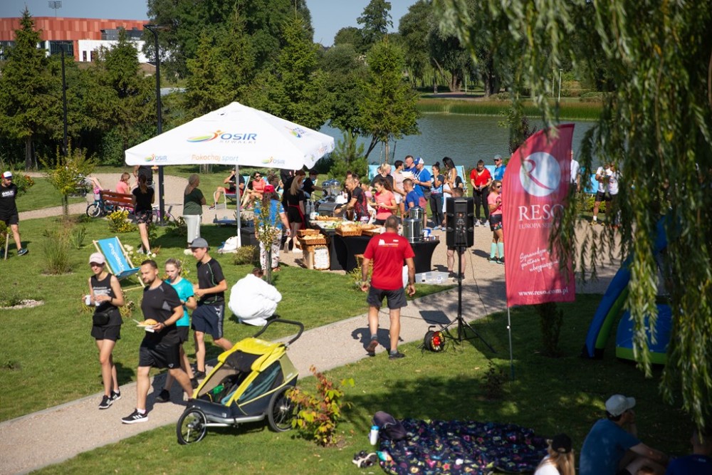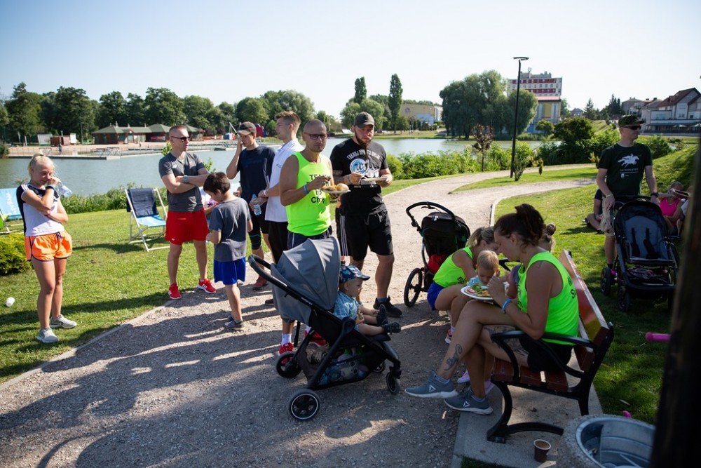 Rodzinny Bieg Śniadaniowy wyruszył z Placu im. Marii Konopnickiej, a finiszował na wyspie nad zalewem Arkadia. Tam na wszystkich biegaczy czekało pyszne śniadanie oraz muzyczna niespodzianka, czyli Piotr Karpienia z gitarą.