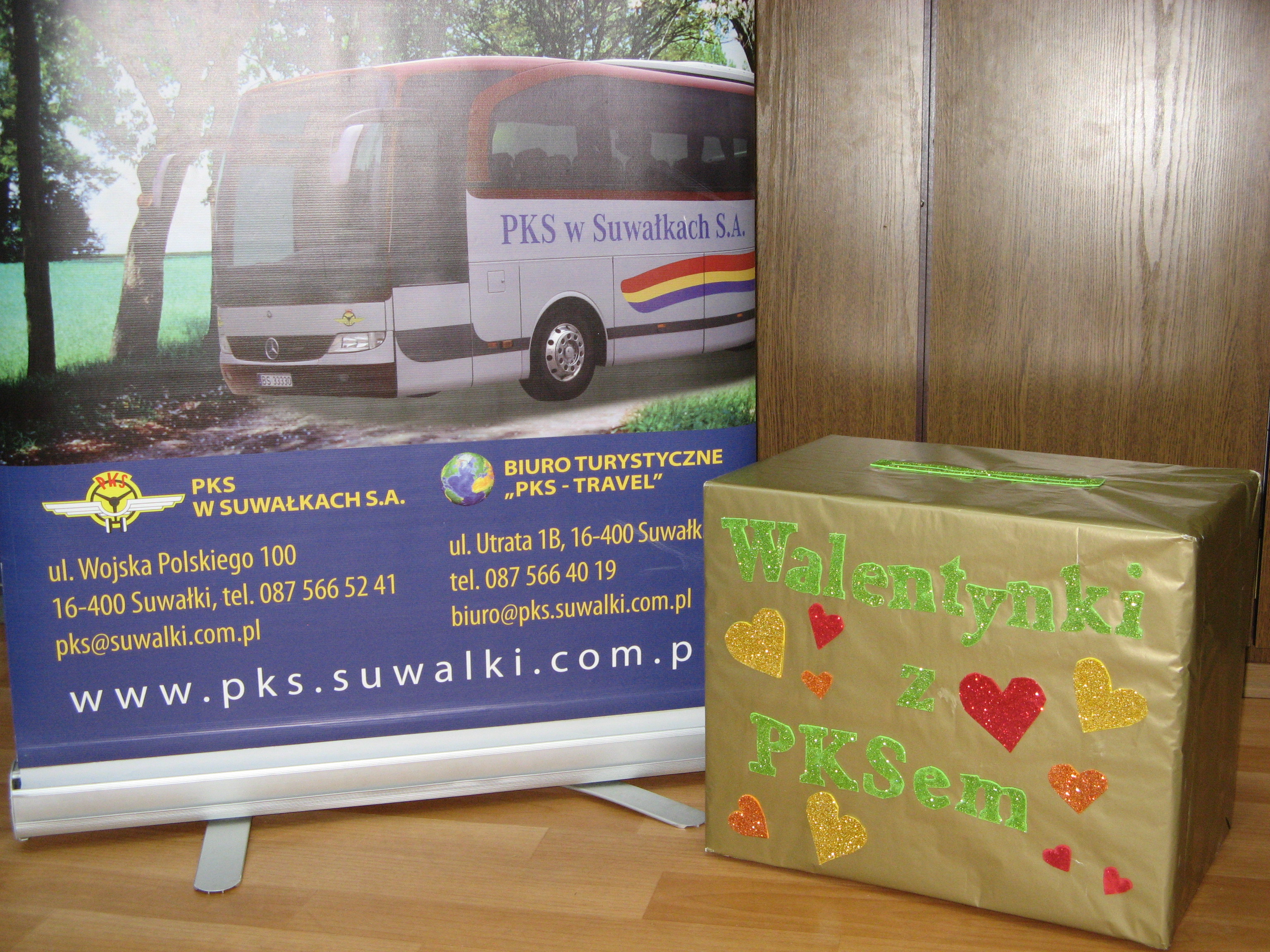 Å»yczenia dla ukochanej osoby można przekazać za poÅ›rednictwem formularza, który jest dostÄ™pny na dworcu PKS w SuwaÅ‚kach S.A. przy kasach biletowych. Druk formularza można również pobrać ze strony www.pkssuwalki.pl. WypeÅ‚nione formularze należy wrzucać do 12.02.2014 r. do specjalnie przygotowanej do tego celu skrzynki z napisem „Walentynki z PKS-em” lub wysÅ‚ać na adres e-mail reklama@pks.suwalki.com.pl.