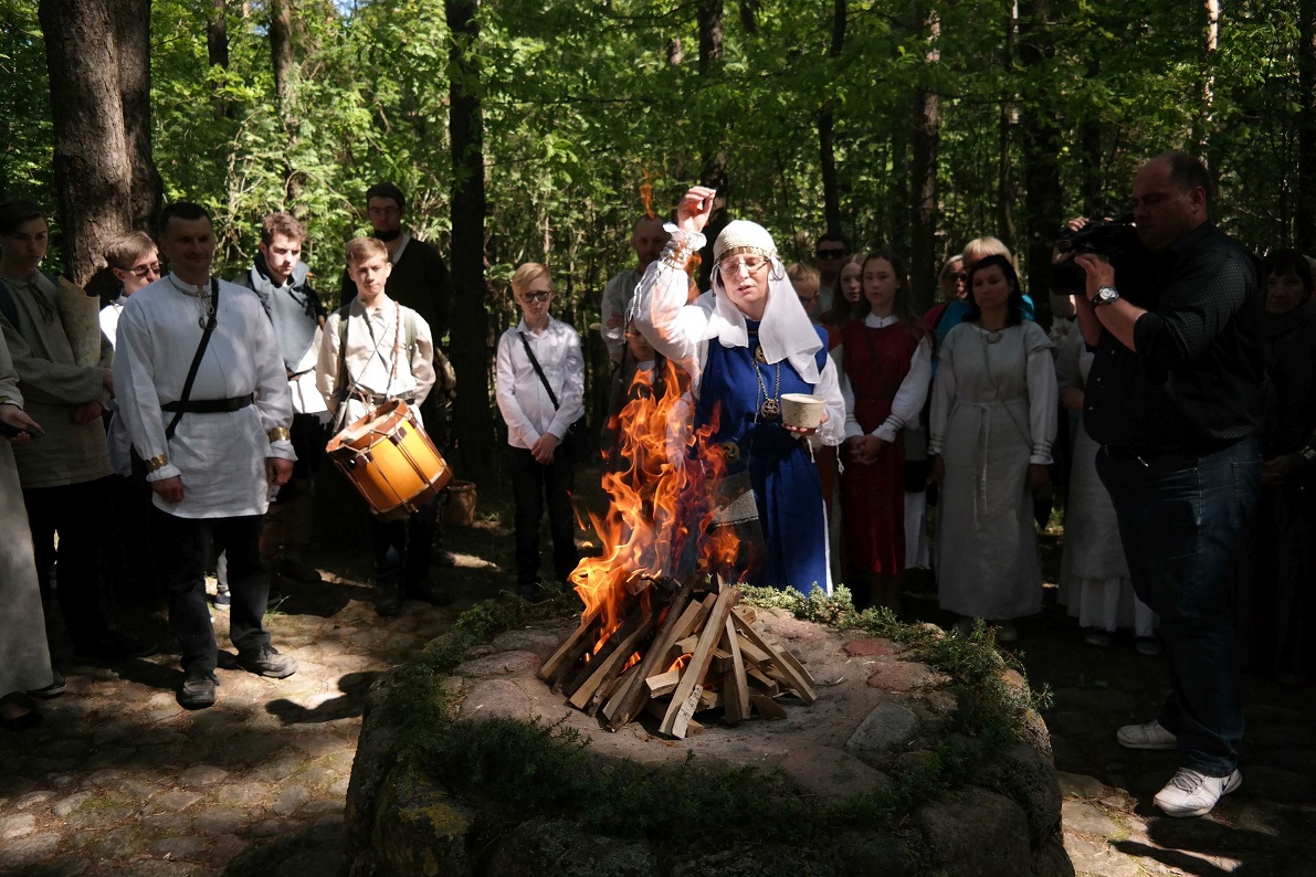 - Następnie Obrzędy Ognia, zapalenie świętego ognia w świętym miejscu ( tu ogień zapalano już przed 7000 laty), czytanie poezji jaćwiesko – pruskiej oraz litewskiej