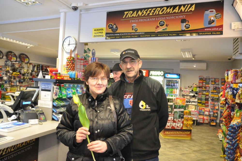 Każda z pań, która w swoje święto odwiedza stację paliw Oil Transfer Development przy ul. Pułaskiego 107, otrzymuje kwiatek.