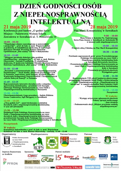 Polskie Stowarzyszenie na rzecz Osób z Niepełnosprawnością Intelektualną Koło w Suwałkach zaprasza na Obchody Dnia Godności Osób z Niepełnosprawnością Intelektualną.