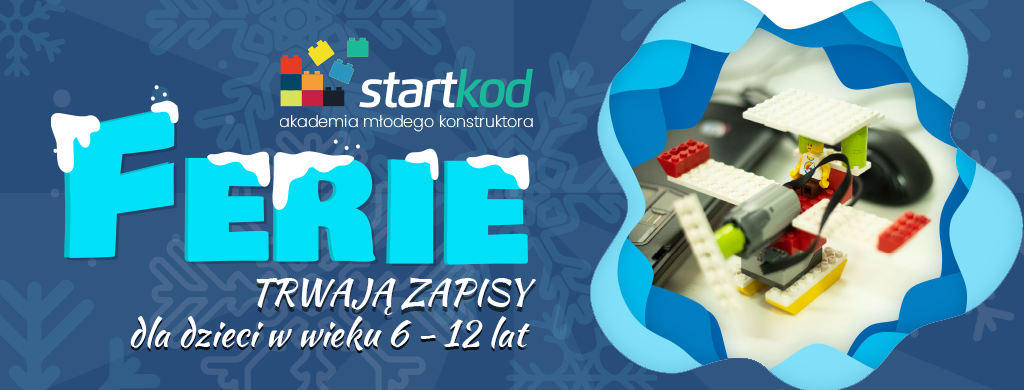 Podczas ferii organizatorzy zajęć Startkod zaplanowali dwa turnusy. Dzieci w wieku od 6 do 12 lat bÄ™dÄ… mogÅ‚y bawić siÄ™ i uczyć, skÅ‚adajÄ…c i programujÄ…c modele z klocków lego. Warsztaty sÄ… oparte o zestawy klocków z serii Lego Education, które posiadajÄ… specjalne czujniki, silniki, zÄ™batki a także moduÅ‚y, które można programować.