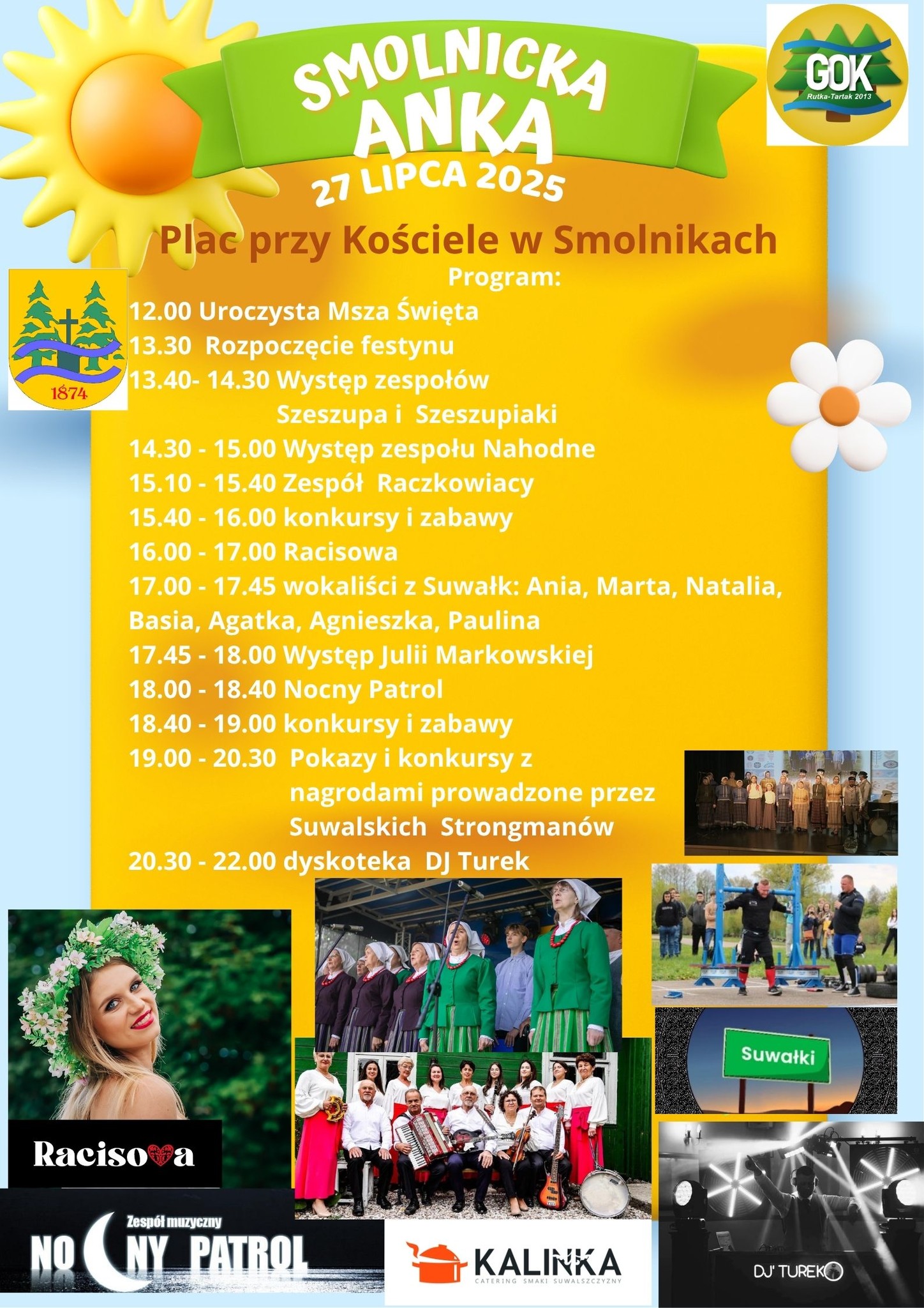 Gmina Rutka-Tartak i Gminny Ośrodek w Rutce-Tartak zapraszają serdecznie na imprezę plenerową Smolnicka Anka.