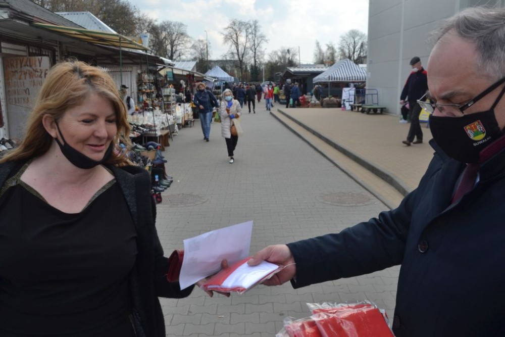 W piątek, 30 kwietnia Czesław Renkiewicz, prezydent Suwałk przekazał mieszkańcom Suwałk 150 biało-czerwonych flag.