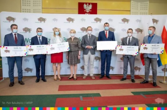 Podczas wtorkowej konferencji symboliczne czeki otrzymali przedstawiciele 6 gmin w północnej części województwa podlaskiego. Gminy te otrzymały 1,2 mln zł dofinansowania na zrealizowanie inwestycji.