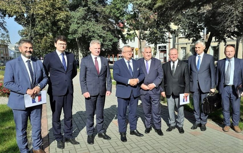 2. Witold Liszkowski( pierwszy z lewej) podczas spotkania w Sejnach z ministrami transportu Litwy i Polski nt. modernizacji przygranicznych dróg.