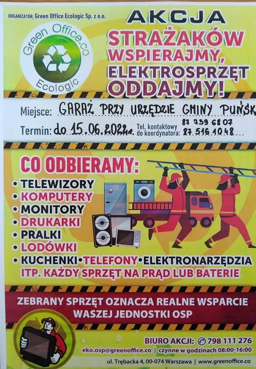 Dochody z zebranego sprzętu zostaną przeznaczone na wsparcie miejscowej Ochotniczej Straży Pożarnej.