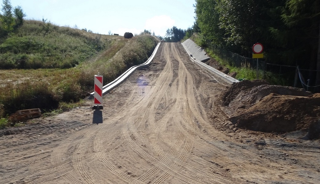 Mimo, że odcinek drogi nie tak dÅ‚ugi, ale przebiega miejscami po terenach bagnistych, wiÄ™c zakres robót jest spory. Mimo to, jak widać na zdjÄ™ciach, wykonano już wiele robót. Jest już utwardzona nawierzchnia żwirowa, przygotowana do poÅ‚ożeniach asfaltu. Jest też – na razie żwirowy- odcinek drogi bocznej.