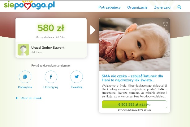 Zbigniew Mackiewicz, Wójt Gminy Suwałki wraz z pracownikami Urzędu Gminy wzięli udział w akcji #gaszynchallenge dla Hani Poczobut z Ełku.