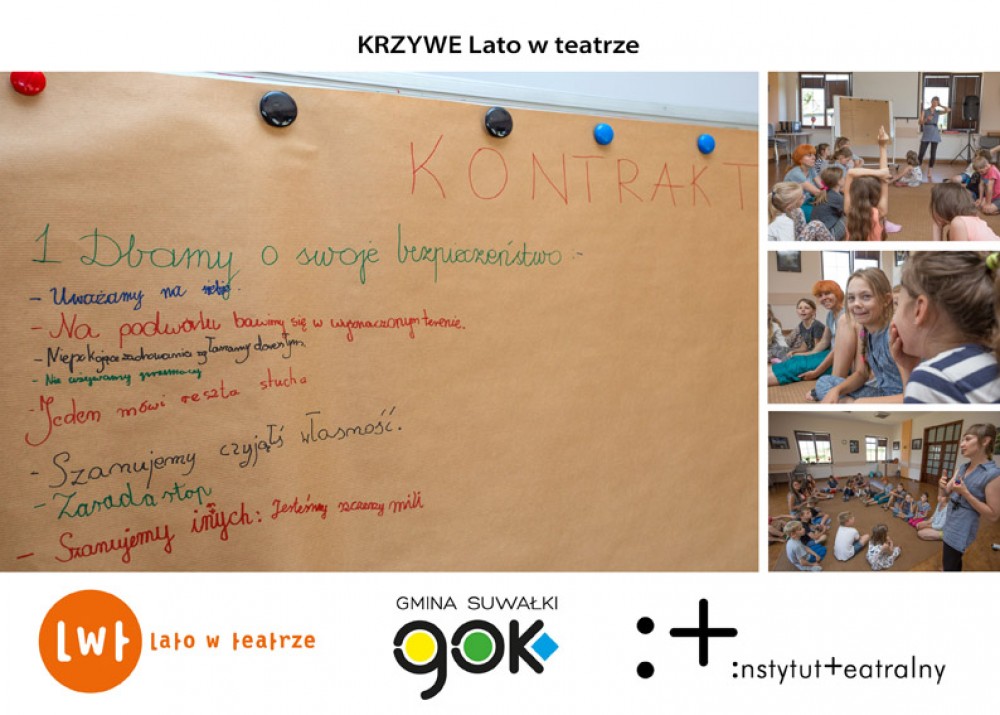 W poniedziałek, 10 lipca 2017 r. w Gminnym Ośrodku Kultury w Krzywem ruszył projekt „Krzywe lato w teatrze”. To co powstanie w czasie warsztatów, będzie można zobaczyć na scenie 22 lipca o godz. 15:00 w GOK w Krzywem i tydzień później, 29 lipca o godz. 15:00 w Muzeum Wigier w Starym Folwarku.