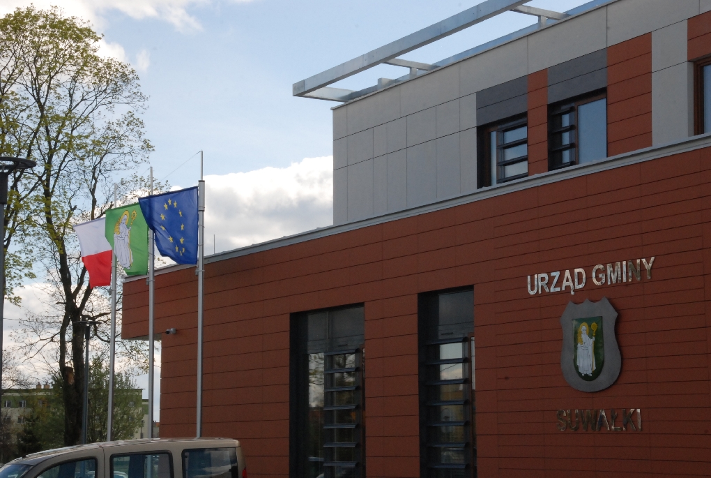 Komisja Heraldyczna pozytywnie zaopiniowała projekty herbu, flagi, banneru, sztandaru, pieczęci, łańcuchów i odznaki jakie stosować będzie Gmina Suwałki, a uchwałę zatwierdzającą projekty Rada Gminy Suwałki przyjęła większością głosów. Od 29.04.2015 r przed Urzędem Gminy powiewają flagi: narodowa, UE i Gminy Suwałki, a ścianę budynku zdobi nowy herb.