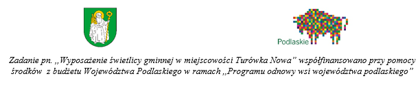 Celem Zadania jest poprawa jakości życia społeczności Gminy Suwałki, głównie mieszkańców Turówki Nowej i sołectw do niej przyległych, poprzez wyposażenie powstającej świetlicy gminnej w miejscowości Turówka Nowa w niezbędny do jej funkcjonowania sprzęt.