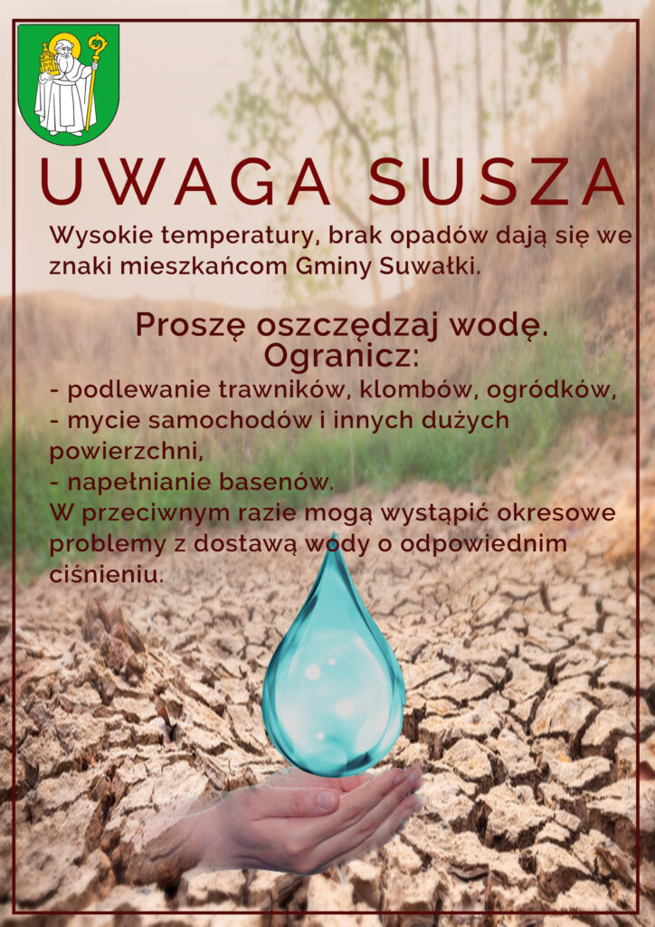 W związku z panującą suszą, Gmina Suwałki apeluje do mieszkańców o oszczędzanie wody.