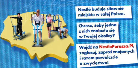 - Do wygrania w konkursie dla gmin: „Nestle poRusza PolskÄ™. poRusz SwojÄ… OkolicÄ™” jest siÅ‚ownia na powietrzu skÅ‚adajÄ…ca siÄ™ z dziewiÄ™ciu urzÄ…dzeÅ„, po łącznej wartoÅ›ci 14.299 zÅ‚otych . Takich siÅ‚owni Nestle funduje szesnaÅ›cie, a o tym gdzie one trafiÄ… zadecyduje liczba gÅ‚osów oddanych w konkursie internetowym. Dlatego serdecznie apelujÄ™ do mieszkaÅ„ców gminy, ale też miasta – wejdźcie raz dziennie na stronÄ™ konkursu www.nestleporusza.pl , kliknijcie na Krzywe. To nic nie kosztuje, a taka siÅ‚ownia przyda siÄ™ mieszkaÅ„com gminy i naszym sÄ…siadom z miasta SuwaÅ‚ki – apeluje Aneta Perkowska p.o,. dyrektora GOK Krzywe.