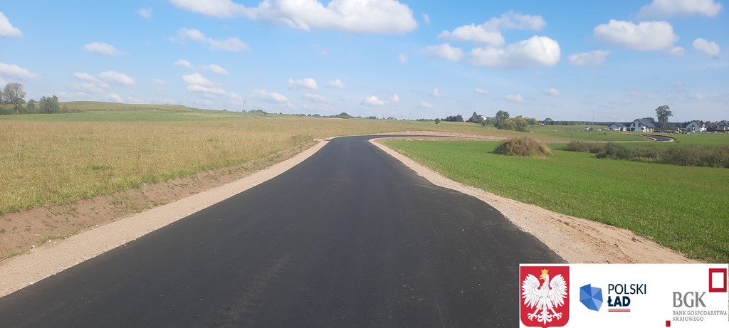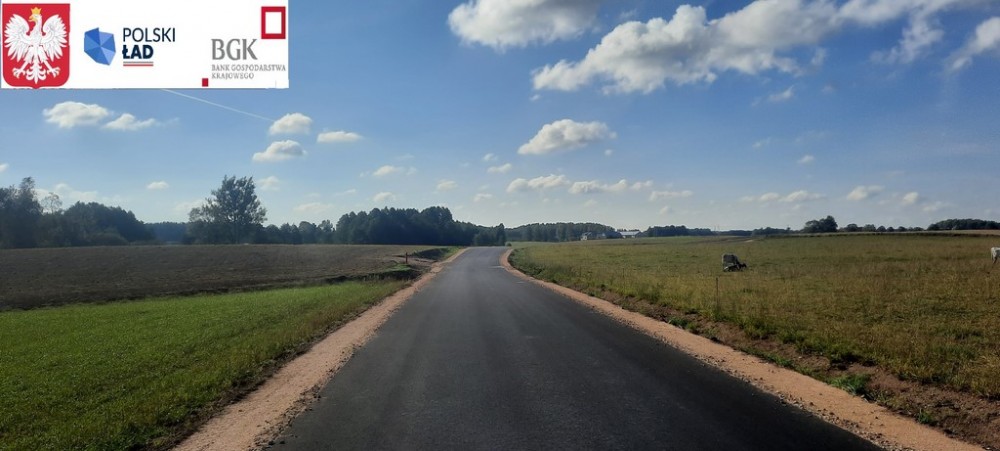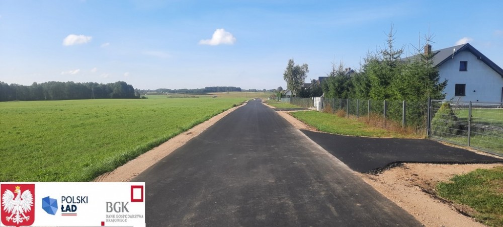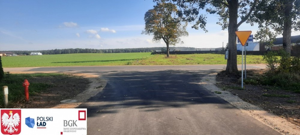 Oleckie Przedsiębiorstwo Drogowo - Mostowe w formule "zaprojektuj i wybuduj" rozbudowało i przebudowało drogę gminną nr 102023B w miejscowości Trzciane wraz z niezbędną infrastrukturą techniczną.