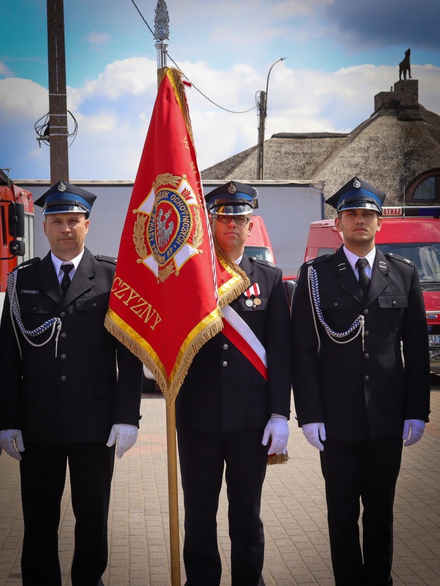 Uroczystość byÅ‚a okazjÄ… do zÅ‚ożenia gratulacji i podziÄ™kowaÅ„ strażakom za wzorowÄ… sÅ‚użbÄ™ i rozwój ochrony przeciwpożarowej na terenie gminy.