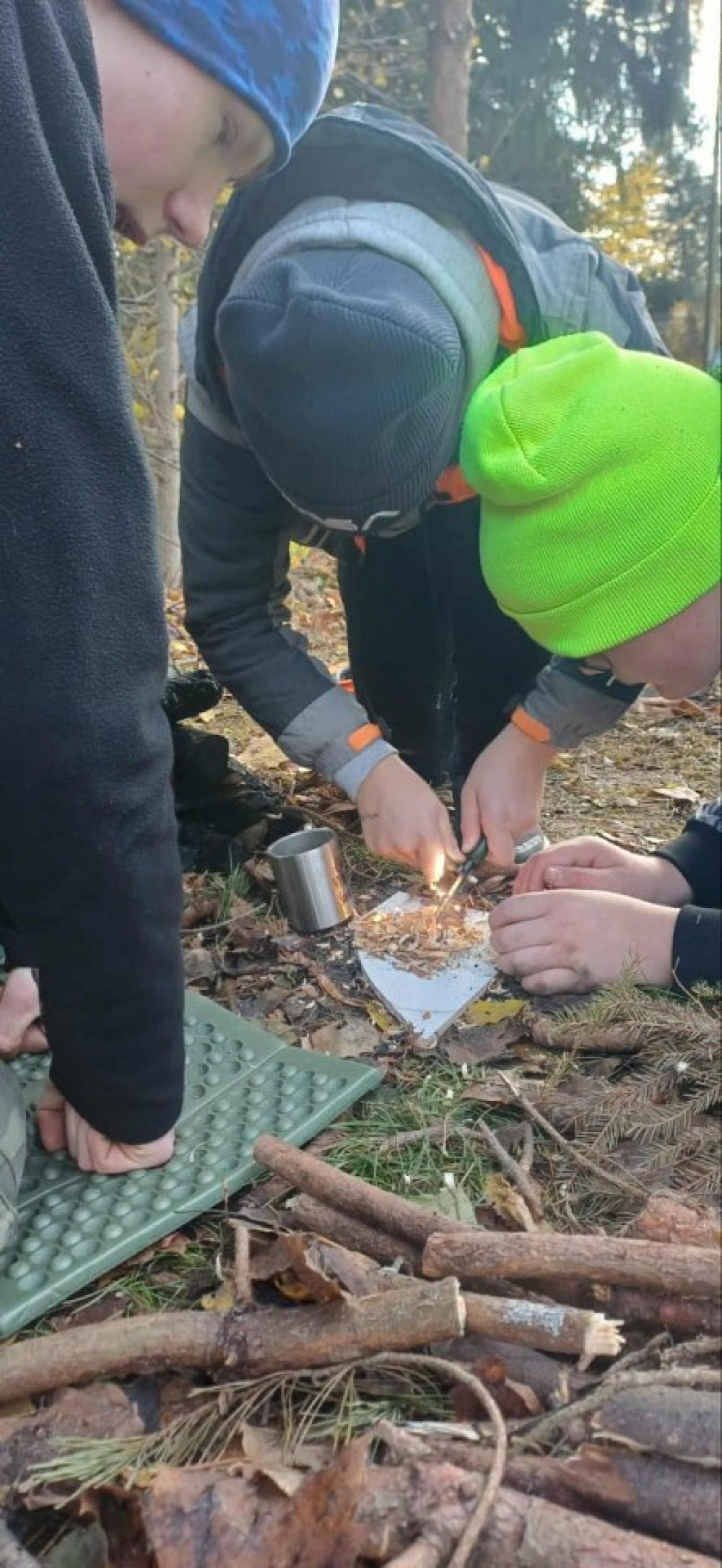 Dzieci nauczyÅ‚y siÄ™ miedzy innymi rozpalać ogieÅ„ krzesiwem, rozpoznawać drzewa, poszukiwać kaloryczne drewno, które nadaje siÄ™ do palenia w sytuacjach kryzysowych oraz zbudować prymitywny filtr wody, który pozwoli oczyÅ›cić wodÄ™ z rzeki czy jeziora z zanieczyszczeÅ„ mechanicznych.