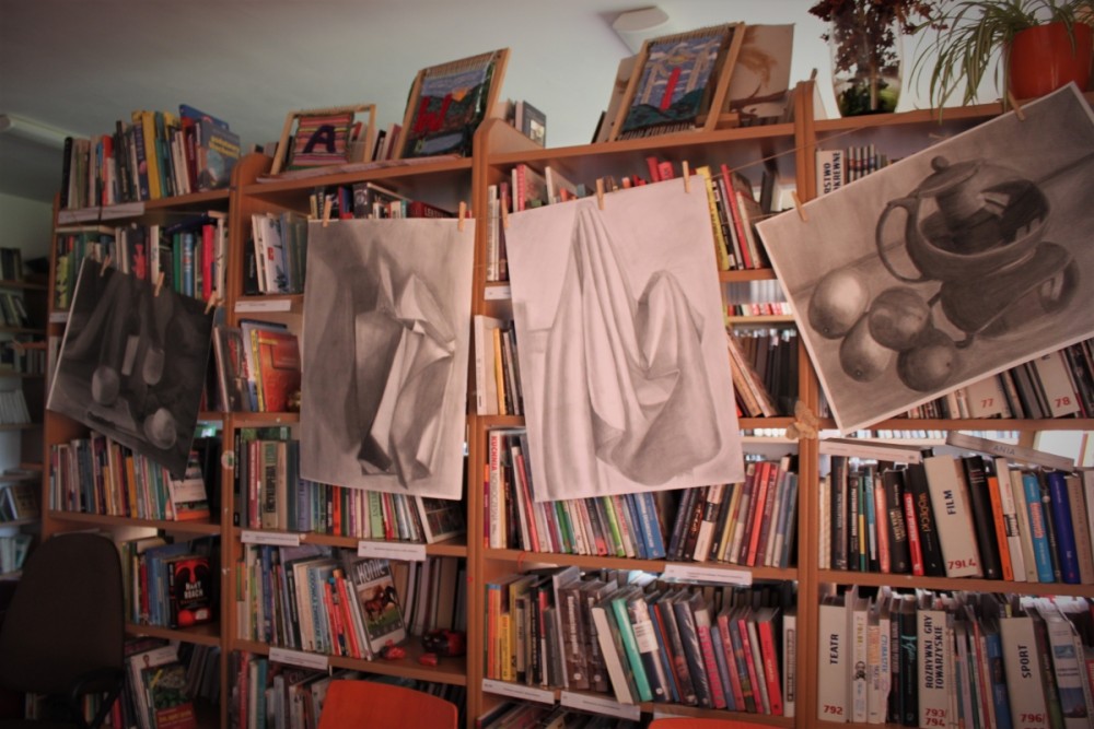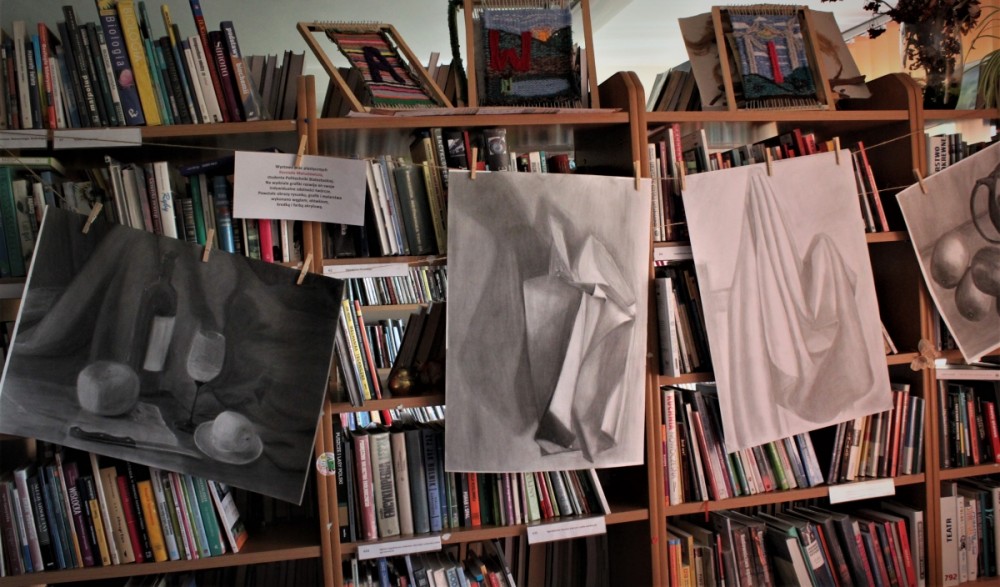 Na wydziale grafiki rozwija on swoje indywidualne zdolności twórcze. Tworzy artystyczne prace graficzne, rysunkowe, malarskie oraz projekty graficzne. Wystawa przyciąga uwagę formatem i wizualnością, zdumiewa nowo odkrytymi umiejętnościami młodego człowieka, poszukiwaniem własnego stylu i tematyki. Zachęca innych do tworzenia prac artystycznych. Wystawa stwarza też okazję do przyciągnięcia młodych ludzi do biblioteki. Zapraszamy!