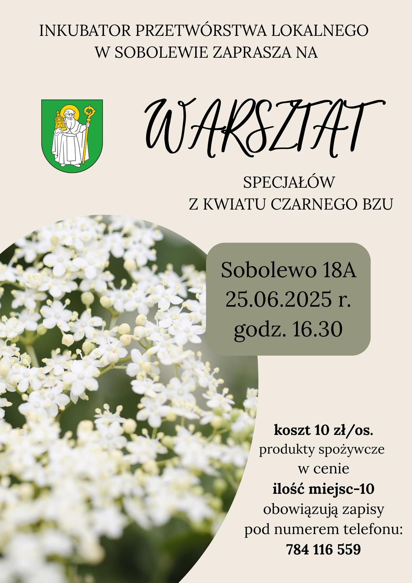 Inkubator Przetwórstwa Lokalnego w Sobolewie zaprasza na kolejne warsztaty. Tym razem wytwarzane będą specjały z kwiatów czarnego bzu.