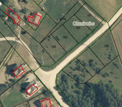 Nieruchomość gruntowa niezabudowana o regularnym kształcie. Działka niezagospodarowana, stanowiąca użytek zielony. Na działce znajdują się pojedyncze nasadzenia drzew i krzewów. W pn-wsch części działki znajduje się nieużytkowy betonowy słup elektroenergetyczny. W pobliżu dostępne sieci: elektroenergetyczna, wodociągowa oraz telekomunikacyjna. Działka posiada bezpośredni dostęp do gminnej drogi wewnętrznej.