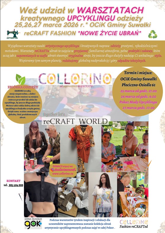 Do udziału w warsztatach upcyklingu odzieży zaprasza Ośrodek Czytelnictwa i Kultury Gminy Suwałki. Upcykling to kreatywny proces przerabiania starych, zniszczonych lub nieużywanych ubrań i materiałów tekstylnych w nowe produkty o wyższej wartości użytkowej lub estetycznej.