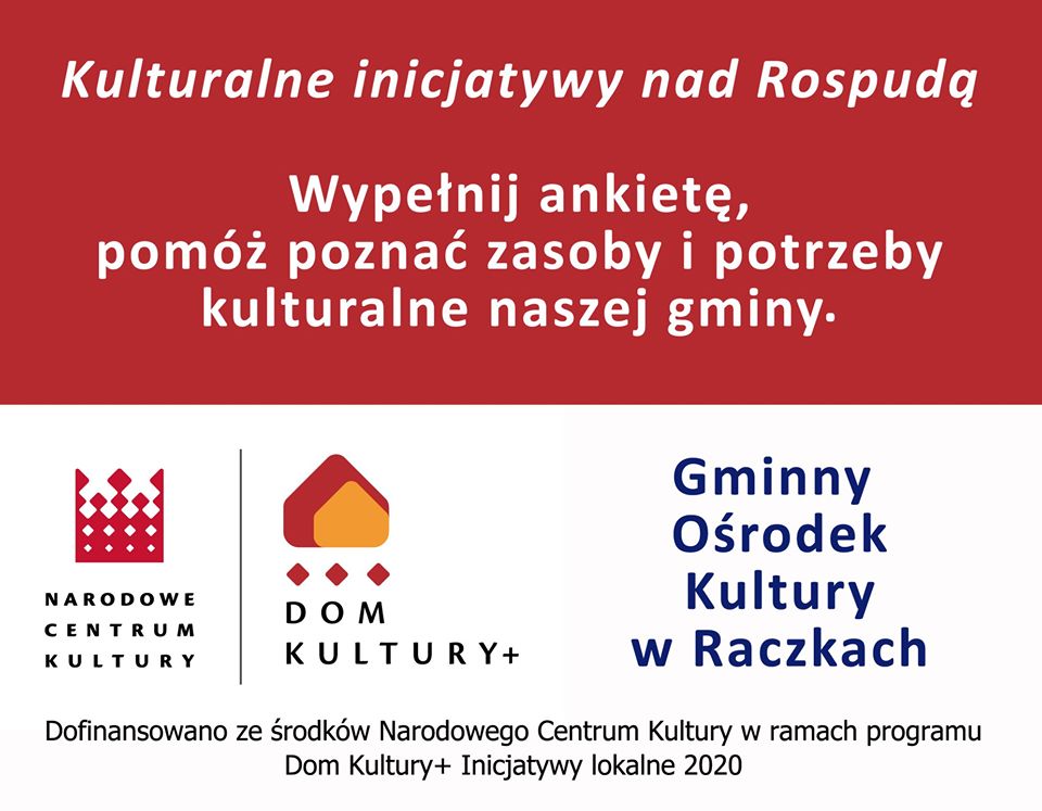 Gminny Ośrodek Kultury w Raczkach rozpoczyna realizację projektu „Kulturalne inicjatywy nad Rospudą”, dofinansowanego ze środków Narodowego Centrum Kultury w ramach programu Dom Kultury + Inicjatywy Lokalne 2020.