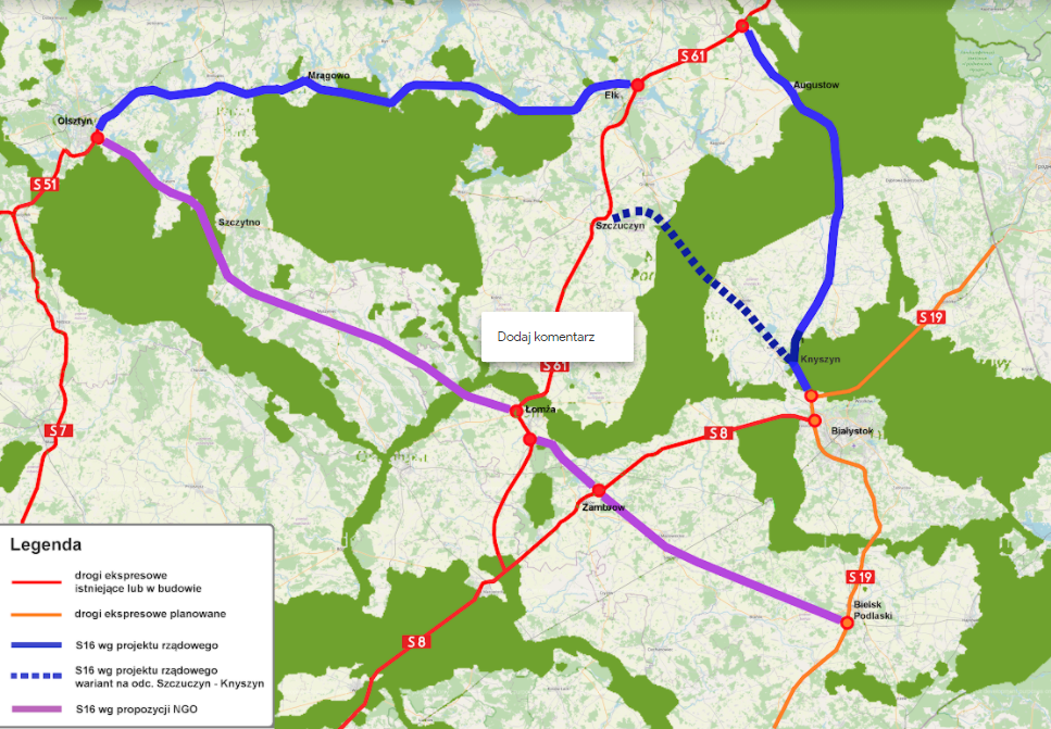Coraz większe emocje wzbudza spór o to, czy nowa droga ekpsresowa, która połączy trasy Via Baltica i Via Carpatia ma przebiegać pod Drodze Krajowej 65 od Knyszyna do Ełku i dalej, jako S16 wieźć przez Mrągowo do Olsztyna, czy śladem krajowej "ósemki" od Białegostoku przez Korycin do Augustowa i dalej do Raczek.