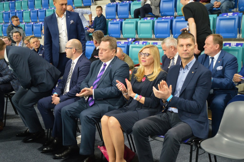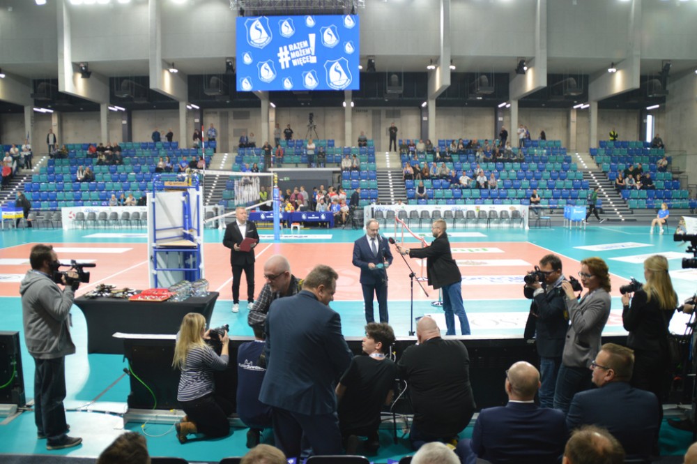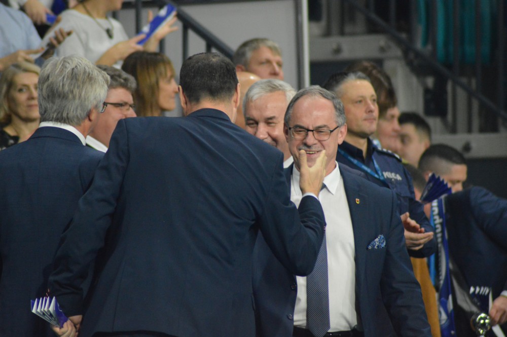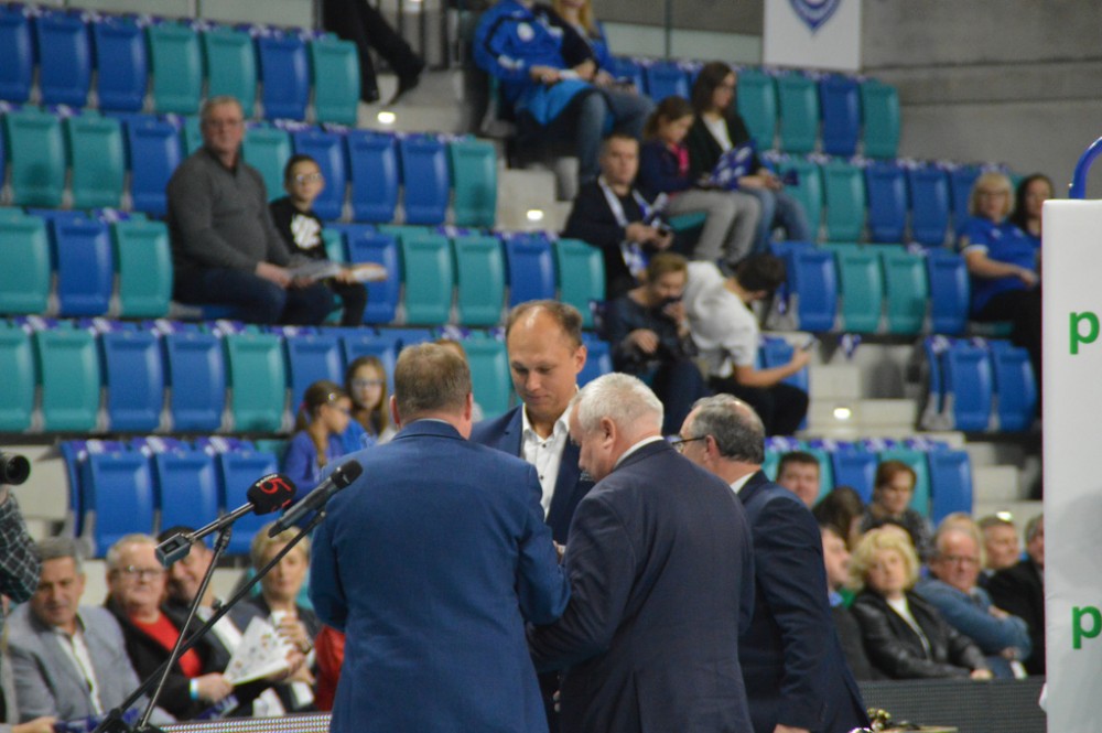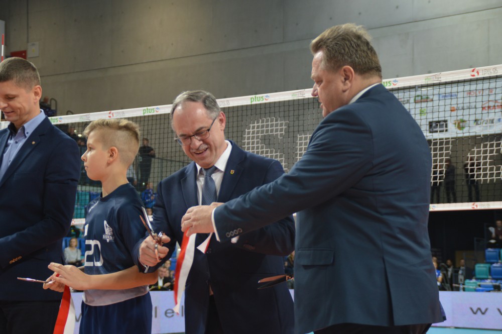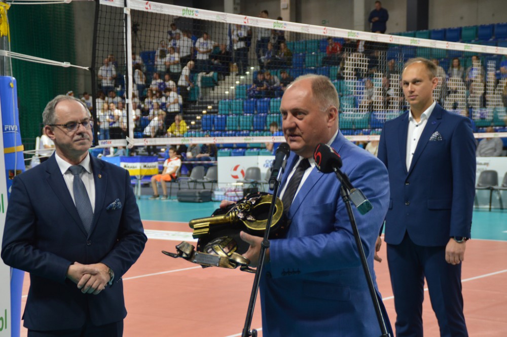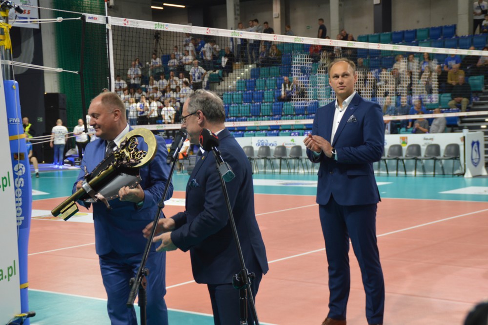 Symboliczne klucze do hali odebrali Waldemar Borysewicz, dyrektor zarządzającego halą Ośrodka Sportu i Rekreacji oraz Wojcieech Winnik, prezes MKS Ślepsk Malow Suwałki, bo siatkarze będą najczęstszymi bywalcami parkietu nowego obiektu.
