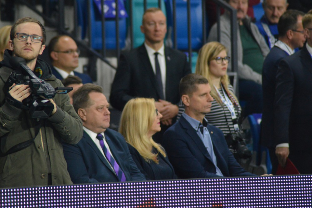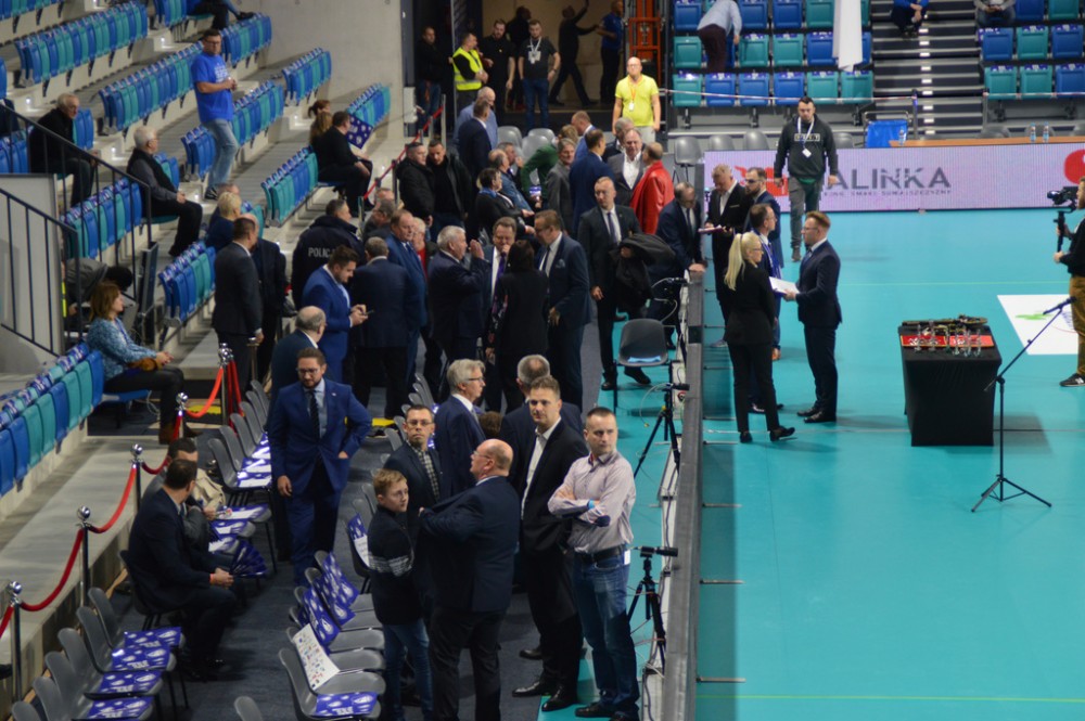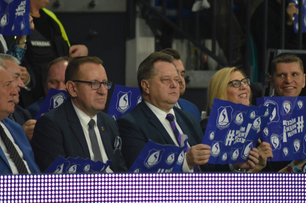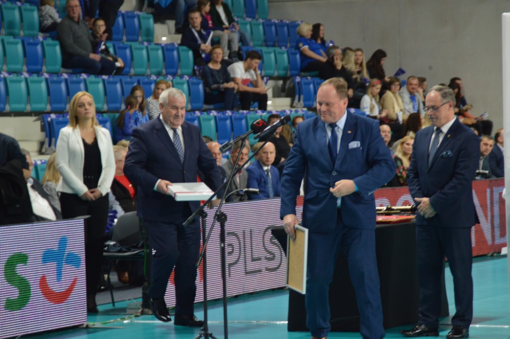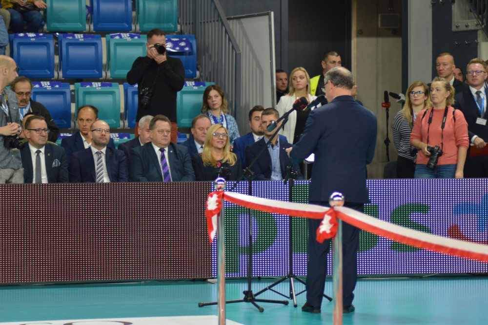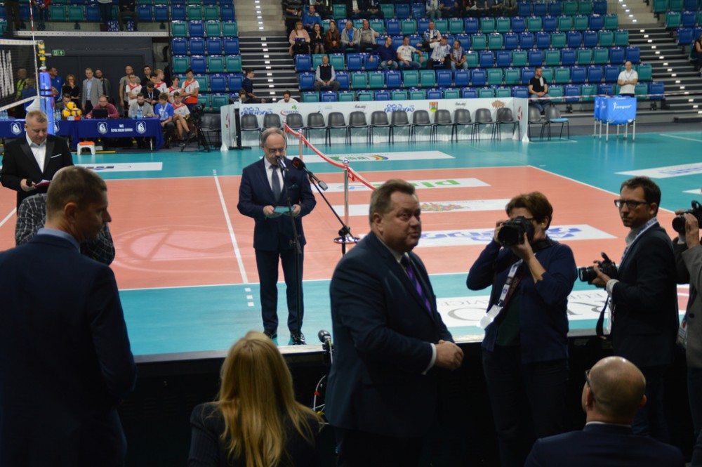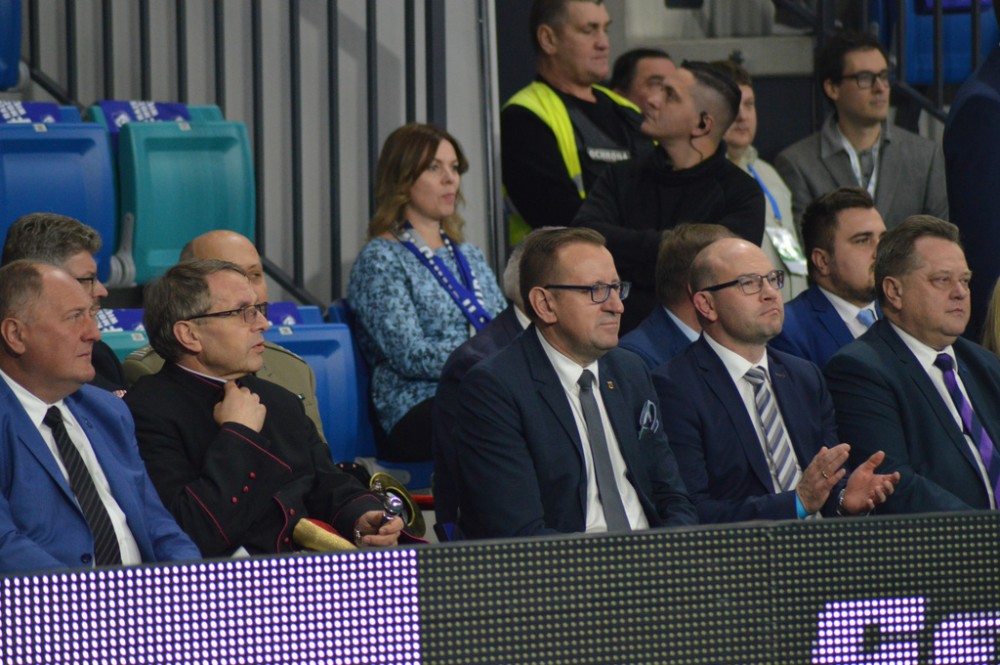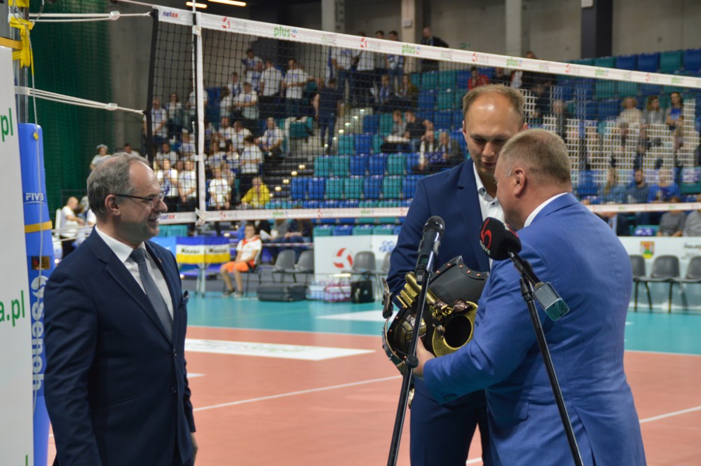 Symboliczne klucze do hali odebrali Waldemar Borysewicz, dyrektor zarządzającego halą Ośrodka Sportu i Rekreacji oraz Wojcieech Winnik, prezes MKS Ślepsk Malow Suwałki, bo siatkarze będą najczęstszymi bywalcami parkietu nowego obiektu.