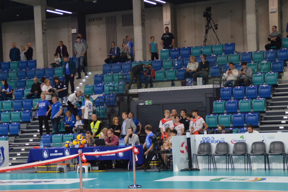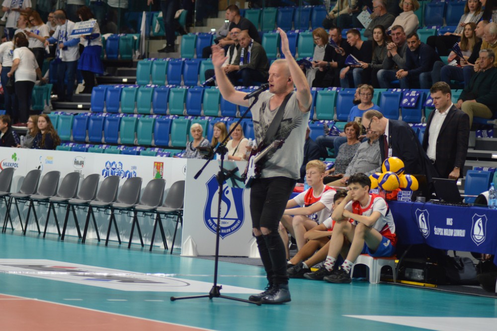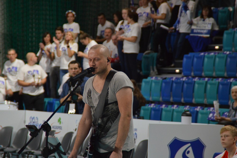 Przed meczem gości muzycznymi coverami rozgrzal Piotr Karpienia, a im bliżej meczu, tym grono widzów się powiększało, aż wypełniło widownię po brzegi. Oby tak było jak najczęściej.