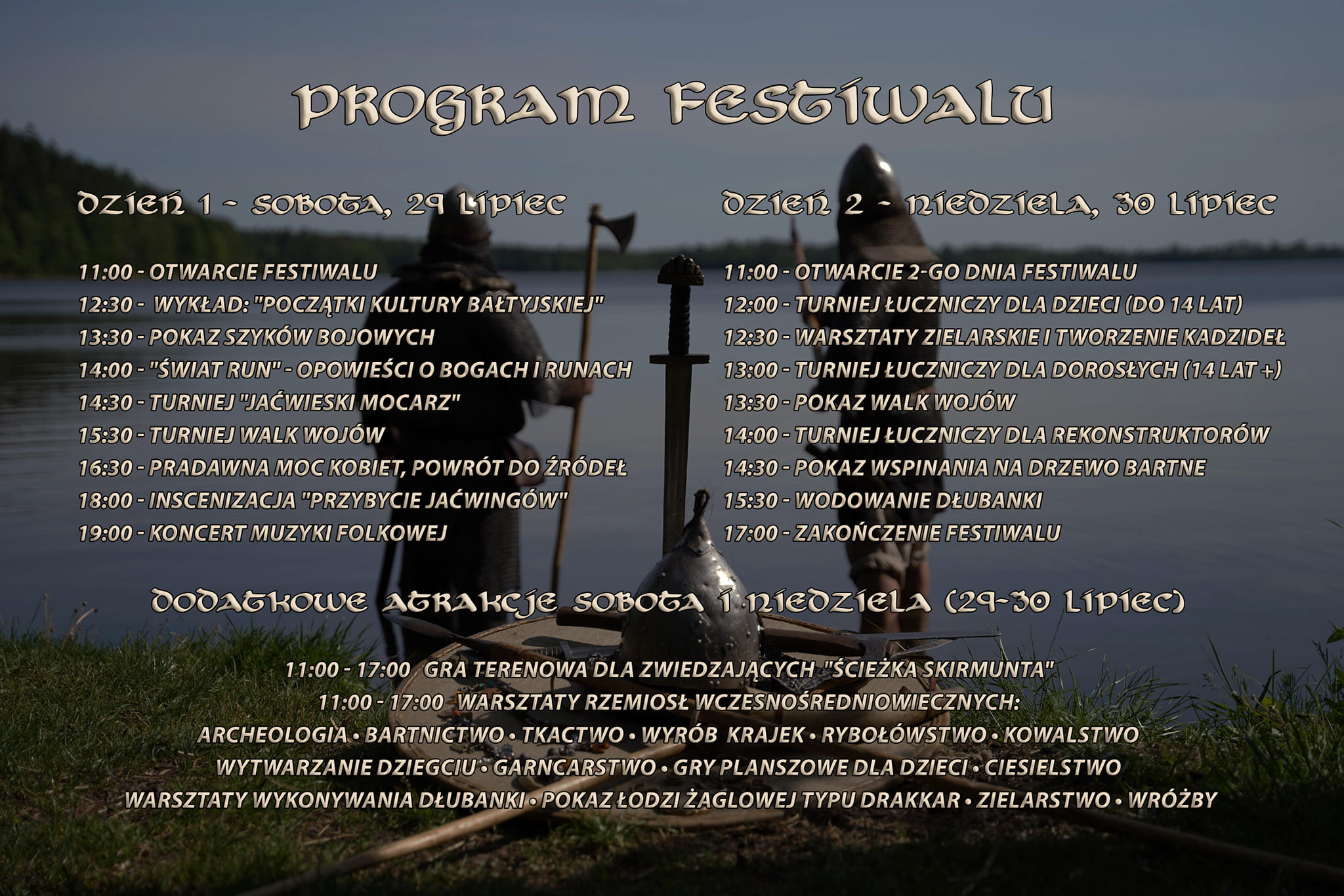 BÄ™dÄ… konkursy z nagrodami dla dorosÅ‚ych, mÅ‚odzieży i dzieci, w tym konkurs Å‚uczniczy, gry terenowe, dawne rzemiosÅ‚a, kuchnia, muzyka, walki wojów i wiele innych atrakcji.