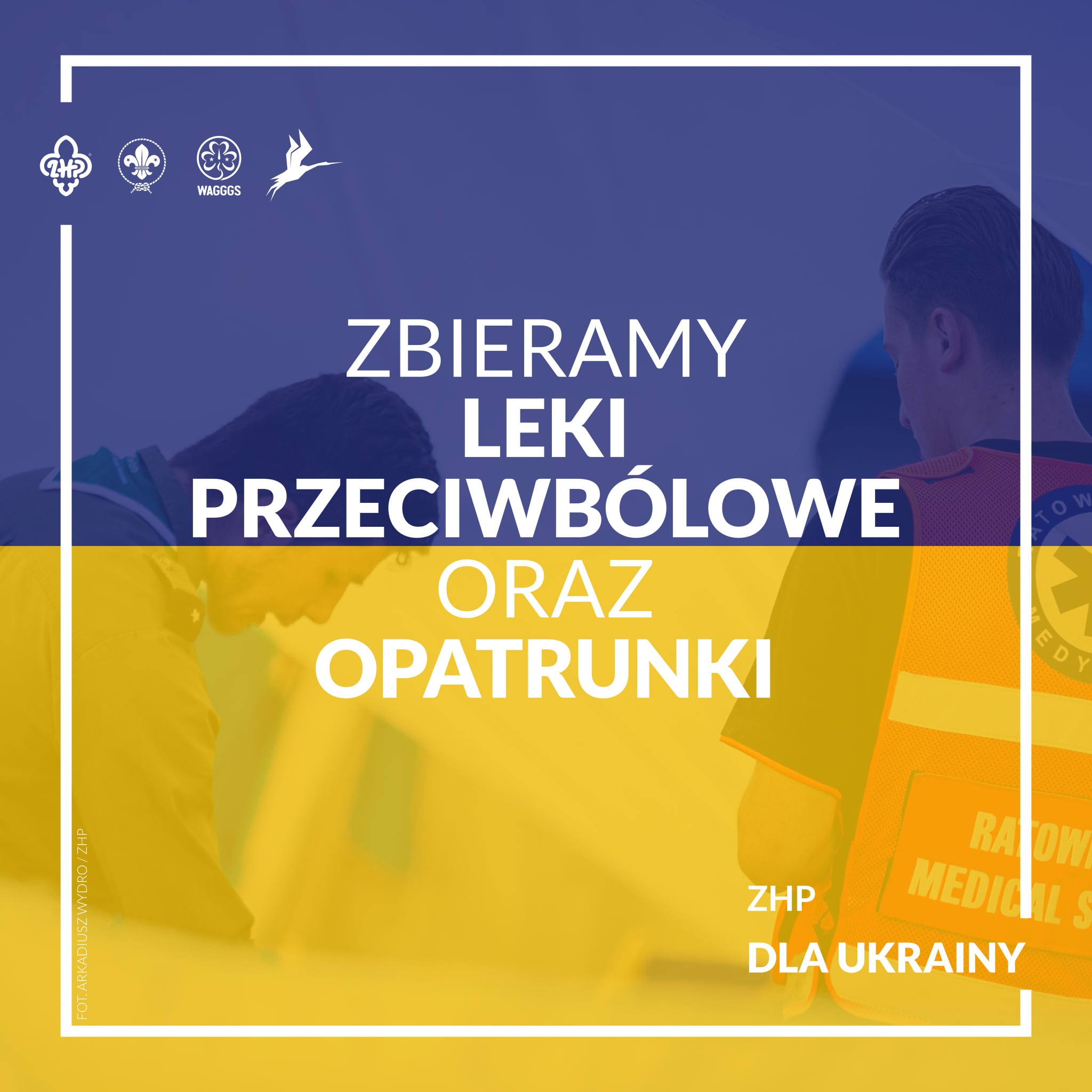 Pogotowie Harcerskie Hufca ZHP Suwałki ogłasza zbiórkę leków przeciwbólowych oraz opatrunków na potrzeby uchodźców z obszarów objętych działaniami wojennymi na Ukrainie.