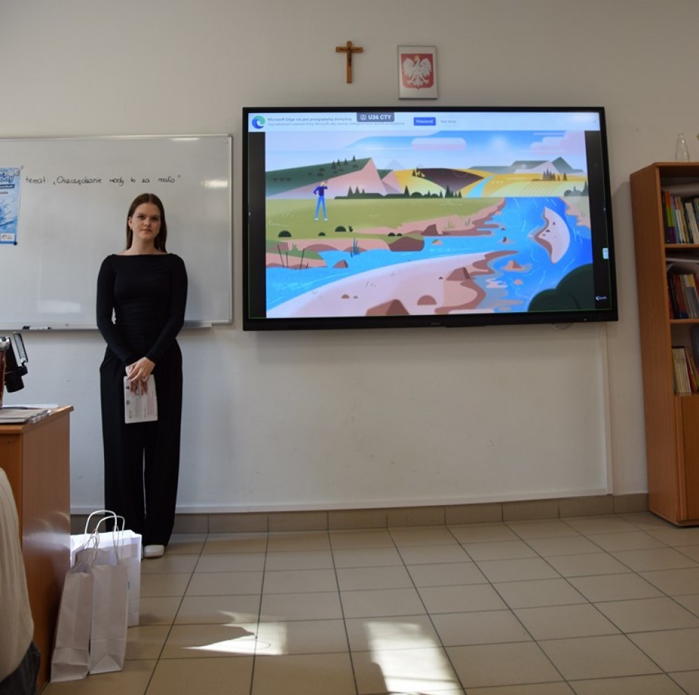 Podczas zajęć uczniowie obejrzeli film oraz wysłuchali prelekcji Piotra Nieznańskiego, który zwrócił uwagę na praktyczne aspekty codziennego korzystania z wody. Podkreślił m.in., że woda kranowa w Polsce jest bezpieczna do picia, a jej wybór pozwala ograniczyć zużycie plastiku i zmniejszyć koszty.