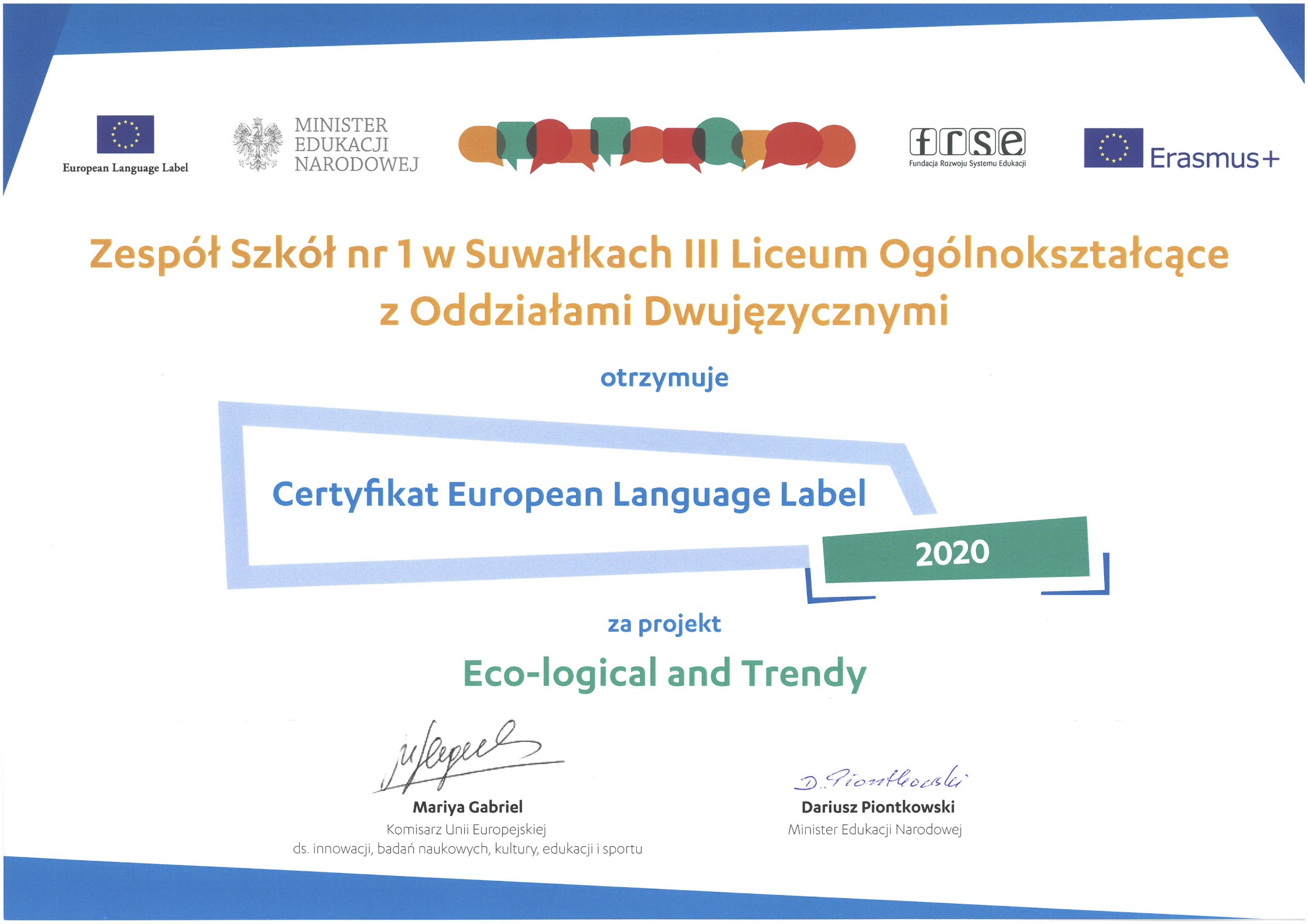 O przyznaniu nagrody zdecydowaÅ‚ projekt p.t. Eco-logical and Trendy ETwinning Project realizowany przez uczniów III LO razem ze szkoÅ‚ami z Turcji i Hiszpanii w czasie wiosennego zamkniÄ™cia szkóÅ‚ oraz nauczania zdalnego w 2020 roku. Uczniowie zrealizowali projekt wyłącznie w sposób zdalny. Koordynatorem projektu byÅ‚ Marcin HoÅ›ciÅ‚owicz - nauczyciel jÄ™zyka angielskiego.