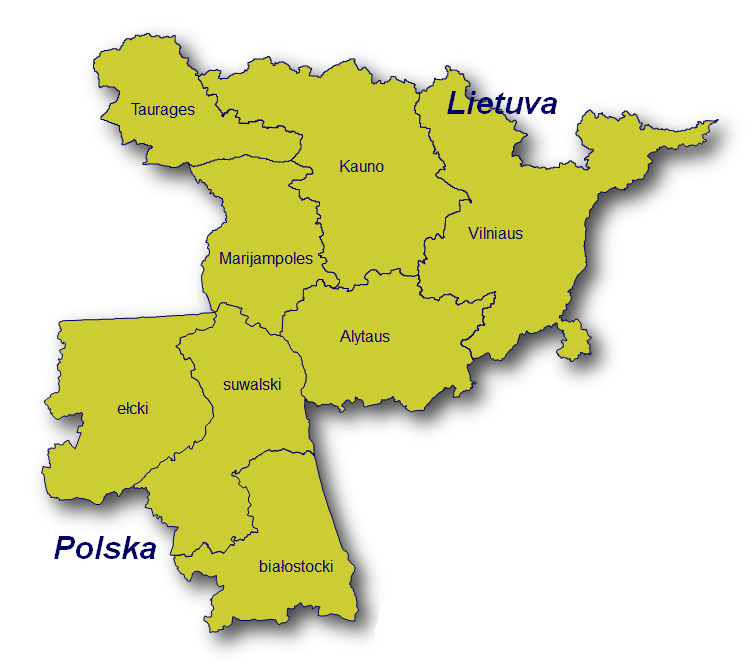 Litwa: okręg olicki, mariampolski, kowieński, tauroski i wileński (z wyjątkiem miasta Wilno)