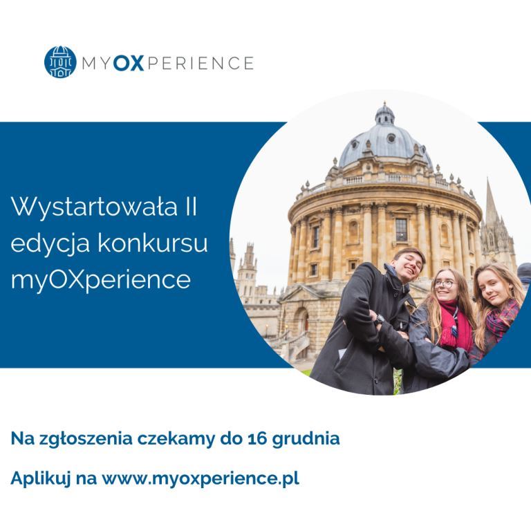 To już druga edycja konkursu myOXperience, w którym 30 uczniów i uczennic szkół średnich pojedzie na Uniwersytet Oksfordzki, by poczuć atmosferę jednej z najlepszych uczelni na świecie i przekonać się, czy warto studiować za granicą.