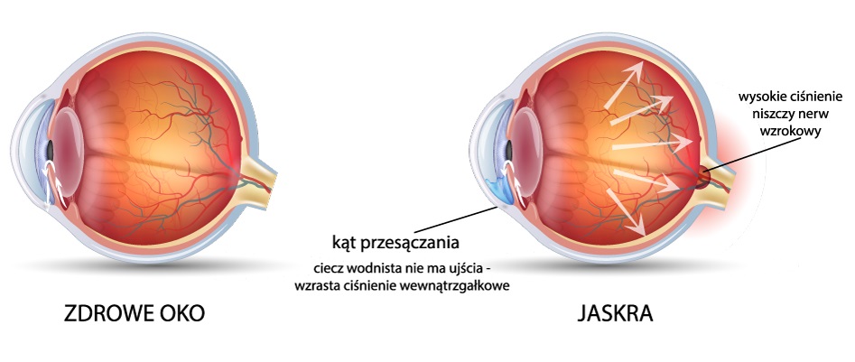 Jaskra z zamkniÄ™tym kÄ…tem przesÄ…czania grozi ostrym atakiem jaskry - stanem bezpoÅ›rednio grożącym utratÄ… widzenia. Objawia siÄ™ on typowo silnym bólem oka i gÅ‚owy, widzeniem za mgłą, czasem utratÄ… widzenia, widzeniem kóÅ‚ tÄ™czowych wokóÅ‚ źródeÅ‚ Å›wiatÅ‚a, nudnoÅ›ciami, wymiotami, pogorszeniem stanu ogólnego pacjenta z zaburzeniami pracy serca, a nawet bólem brzucha. W wyniku ataku jaskry dochodzi do nieodwracalnego uszkodzenia nerwu wzrokowego oraz innych struktur oka, np. soczewki, zwieracza źrenicy. „Zróżnicowanie objawów ostrego ataku jaskry czÄ™sto opóźnia diagnozÄ™. Istotne jest, by powiedzieć o wszystkich objawach lekarzowi. Chory z ostrym atakiem jaskry powinien jak najszybciej trafić do okulisty, nierzadko konieczna jest hospitalizacja” - tÅ‚umaczy lek. med. Ewa Anielska, okulista z Centrum Medycznego ENEL-MED.