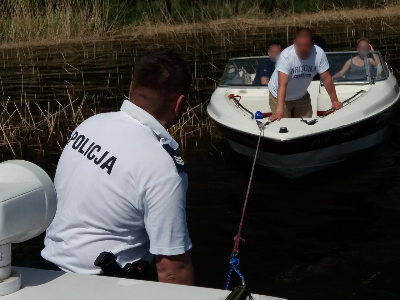 Załoga policyjnej łodzi motorowodnej pomogła motorowodniakom, którzy utracili możliwość manewrowania łodzią, w wyniku awarii silnika.