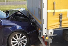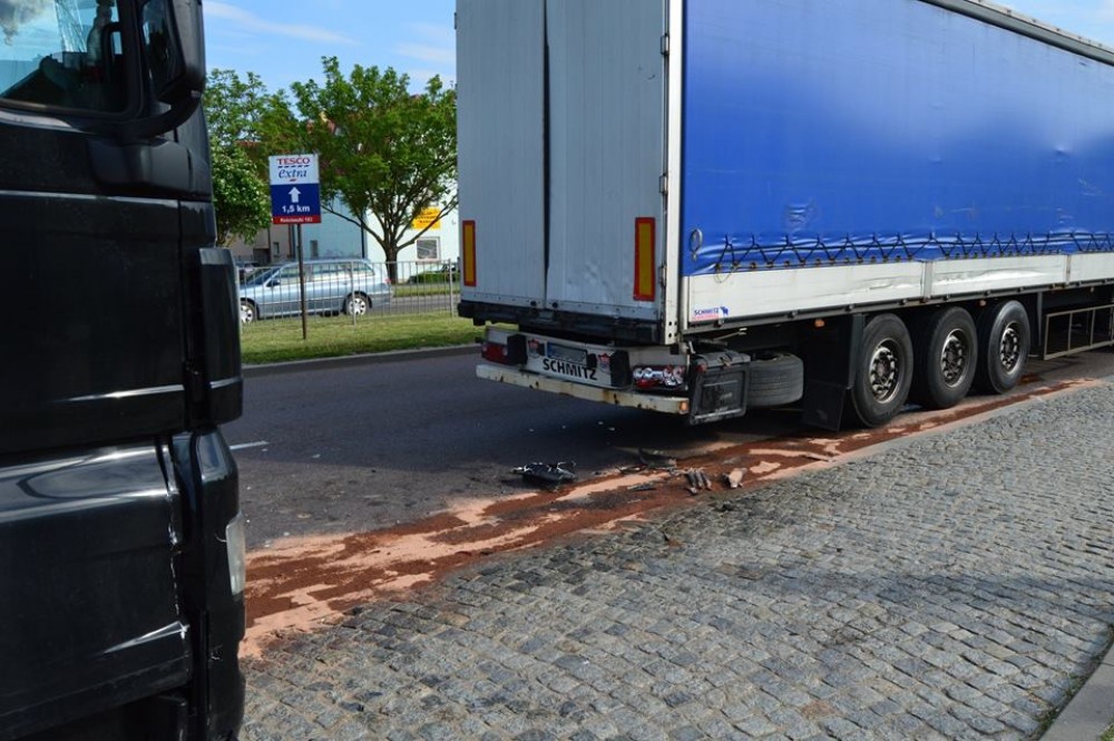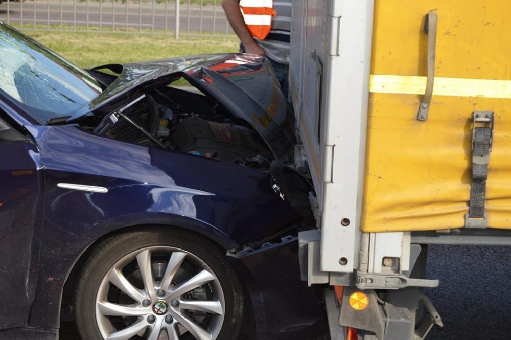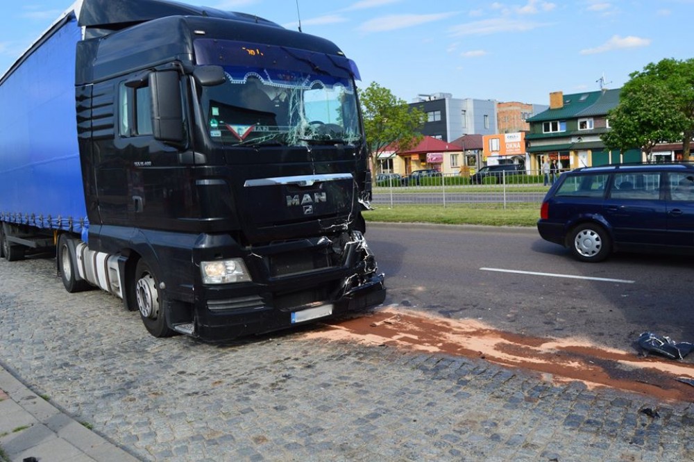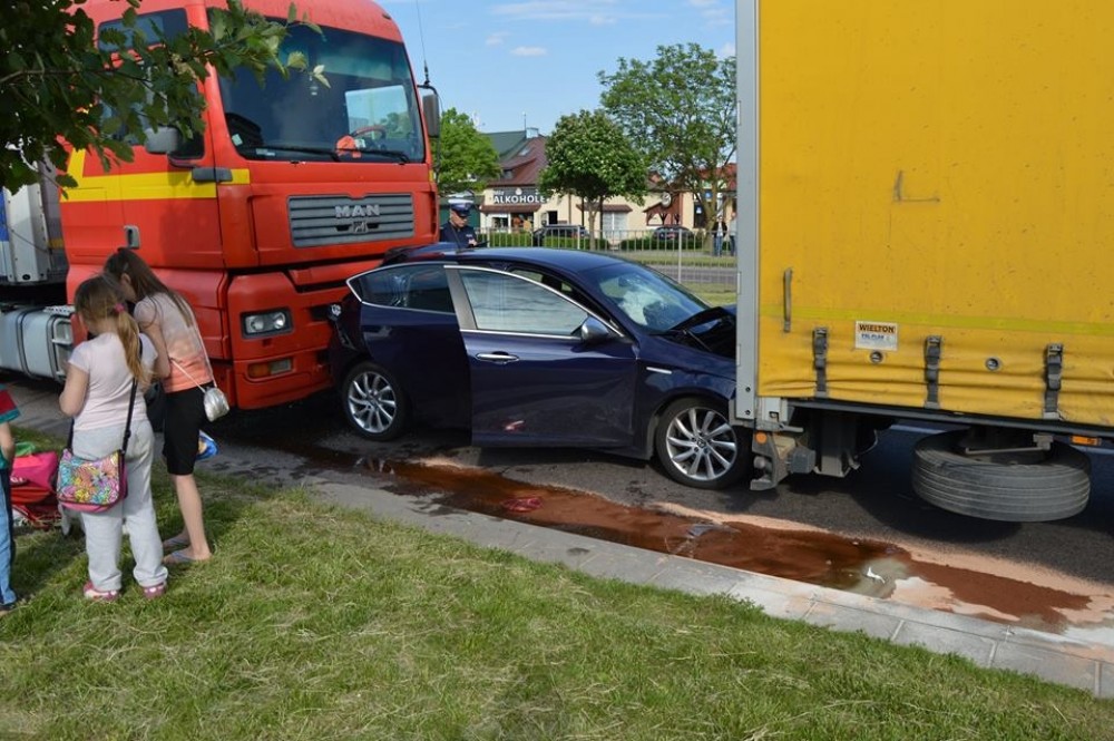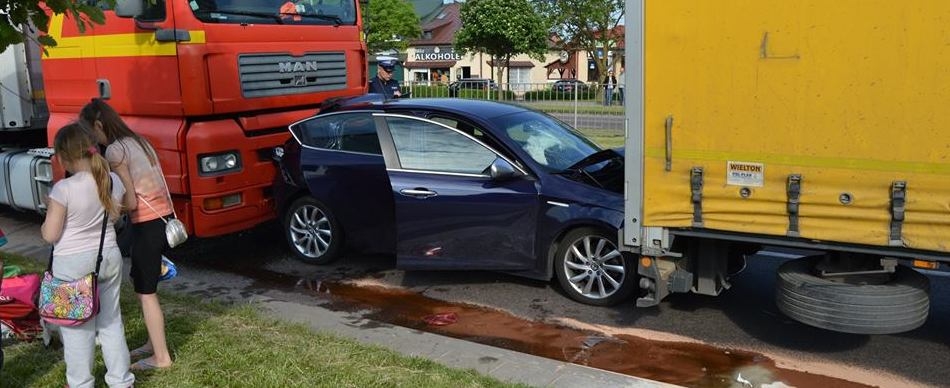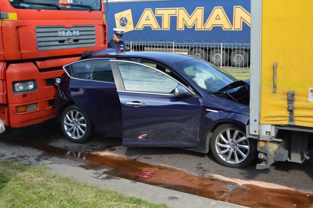 Alfa Romeo maskÄ… wbita w tyÅ‚ litewskiej scanii. Za niÄ… ciężarówka wciÅ›niÄ™ta w drzwi bagażnika. To jÄ… na osobówkÄ™ wepchnÄ…Å‚ tir z Ostrołęki. Trzy pierwsze pojazdy staÅ‚y na czerwonym Å›wietle przed przejÅ›ciem dla pieszych. Ostatnie auto nie zatrzymaÅ‚o siÄ™ za nimi i z impetem wpadÅ‚o w kolumnÄ™ samochodów.