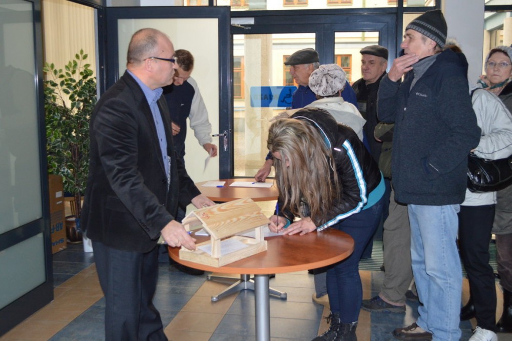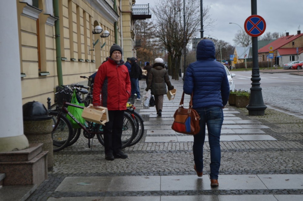 Sto karmników dla ptaków rozdano w poniedziałek w suwalskim ratuszu. Domki rozchodziły się jak świeże bułeczki. Suwalczanie ustawili się po nie w długiej kolejce.